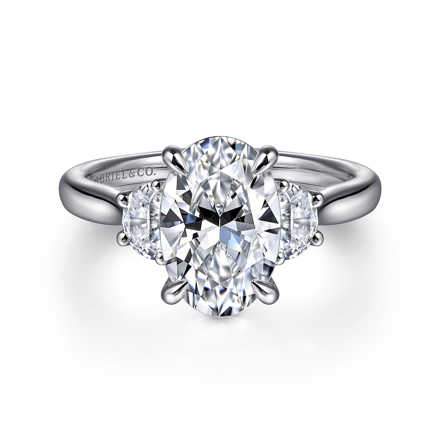 Devon - 14K White Gold Oval Three Stone Diamond Engagement Ring