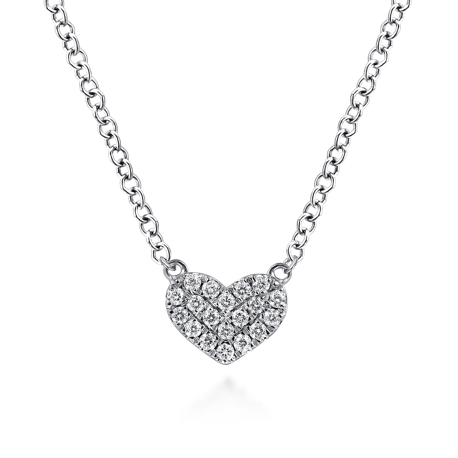 14K White Gold Pavé Diamond Pendant Heart Necklace
