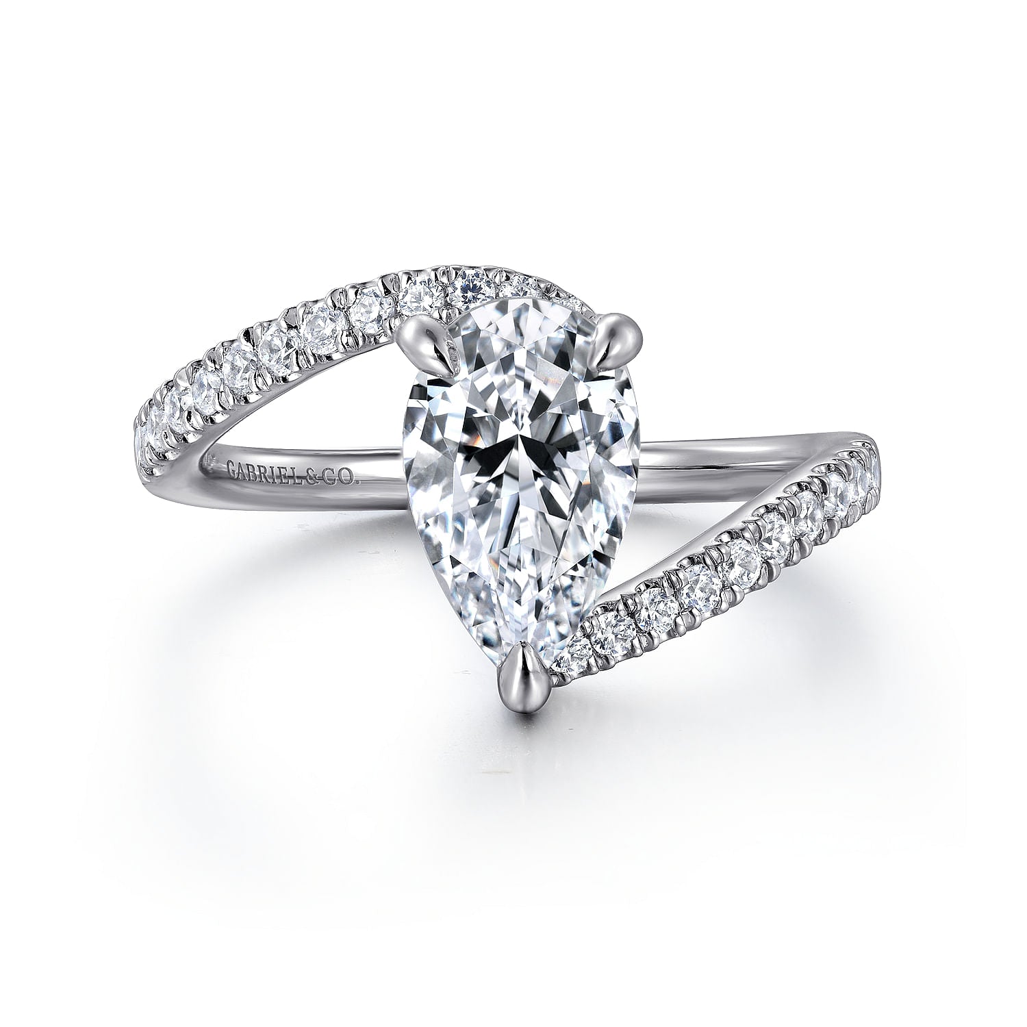 Leina - 14K White Gold Pear Shape Hidden Halo Bypass Engagement Ring