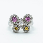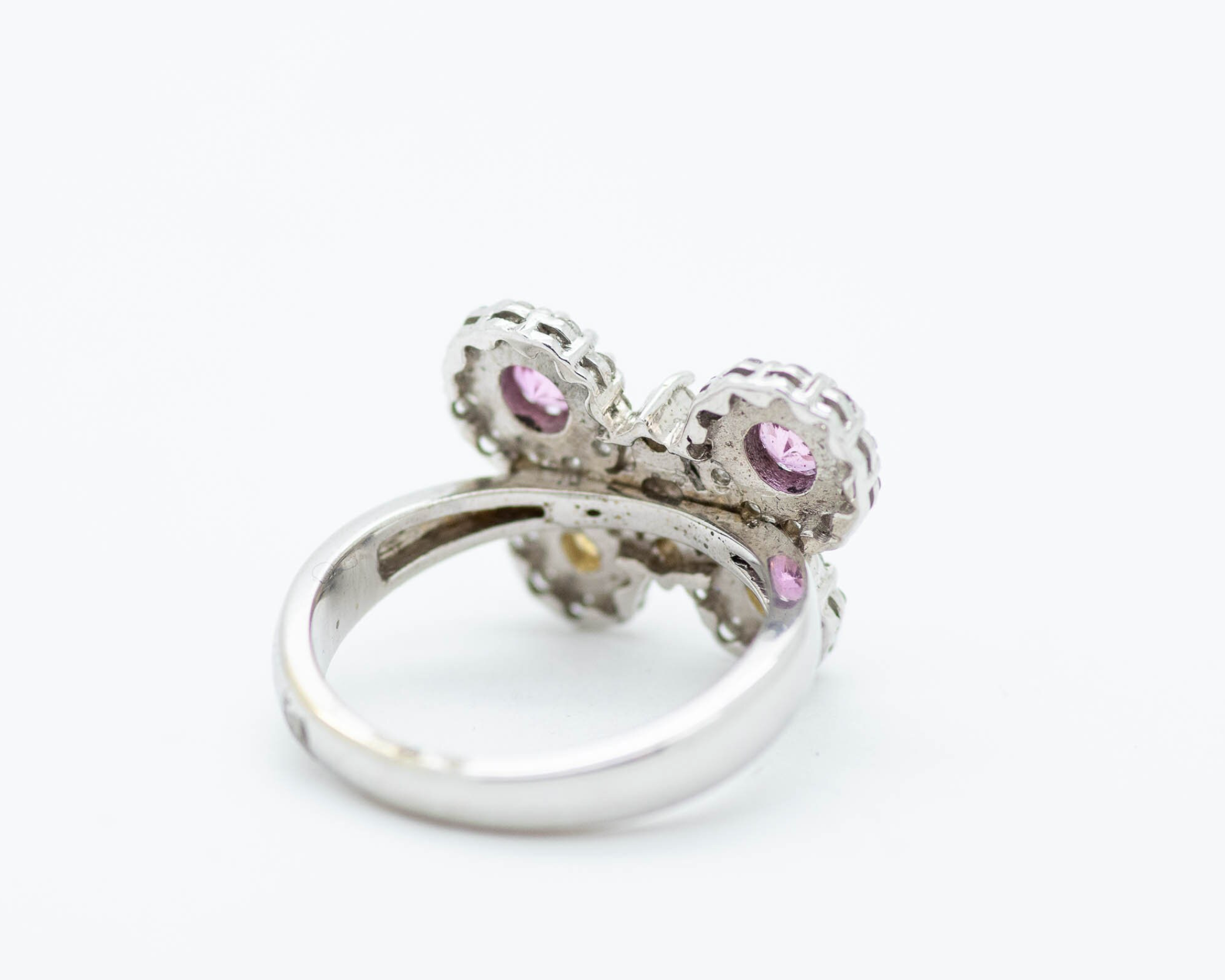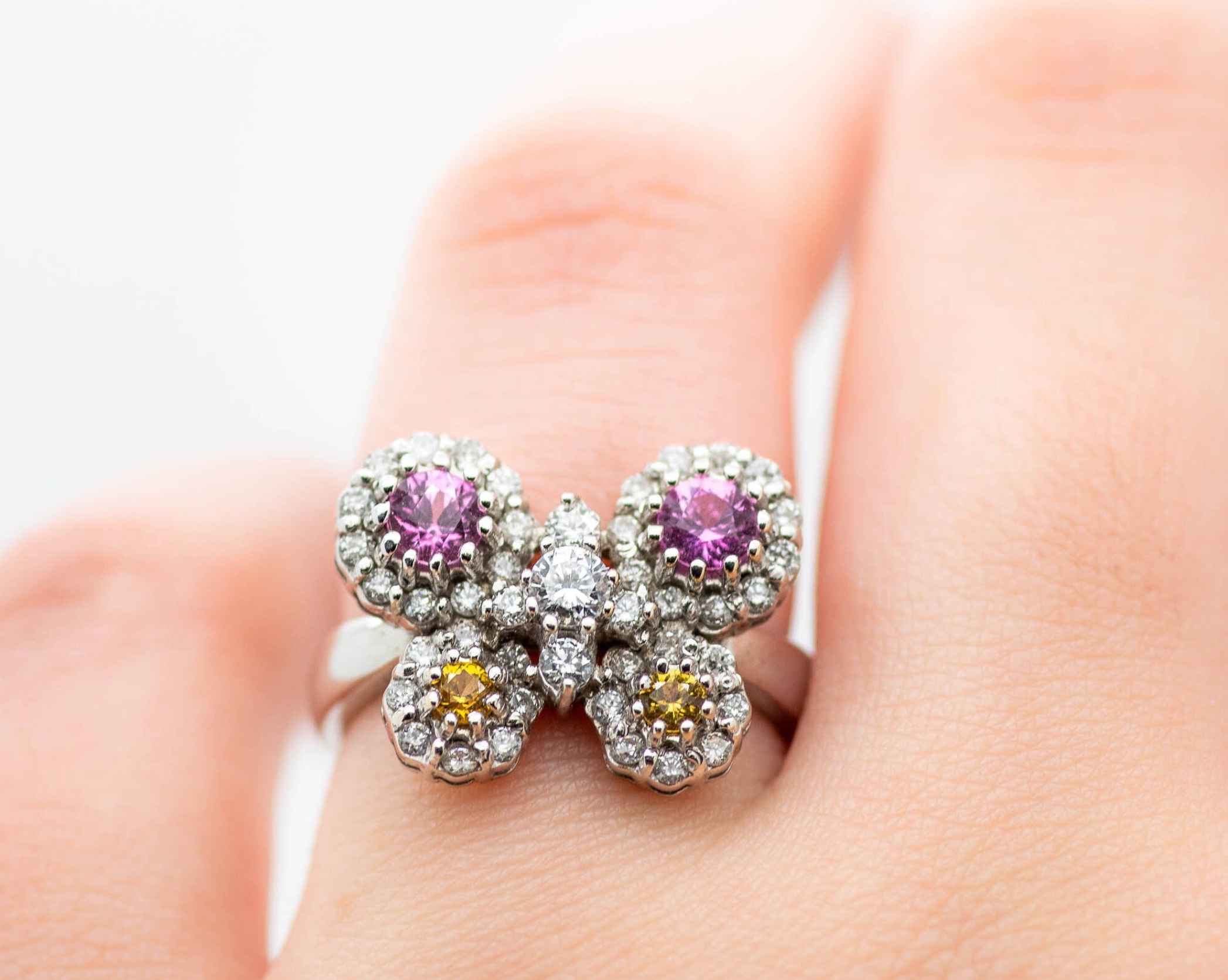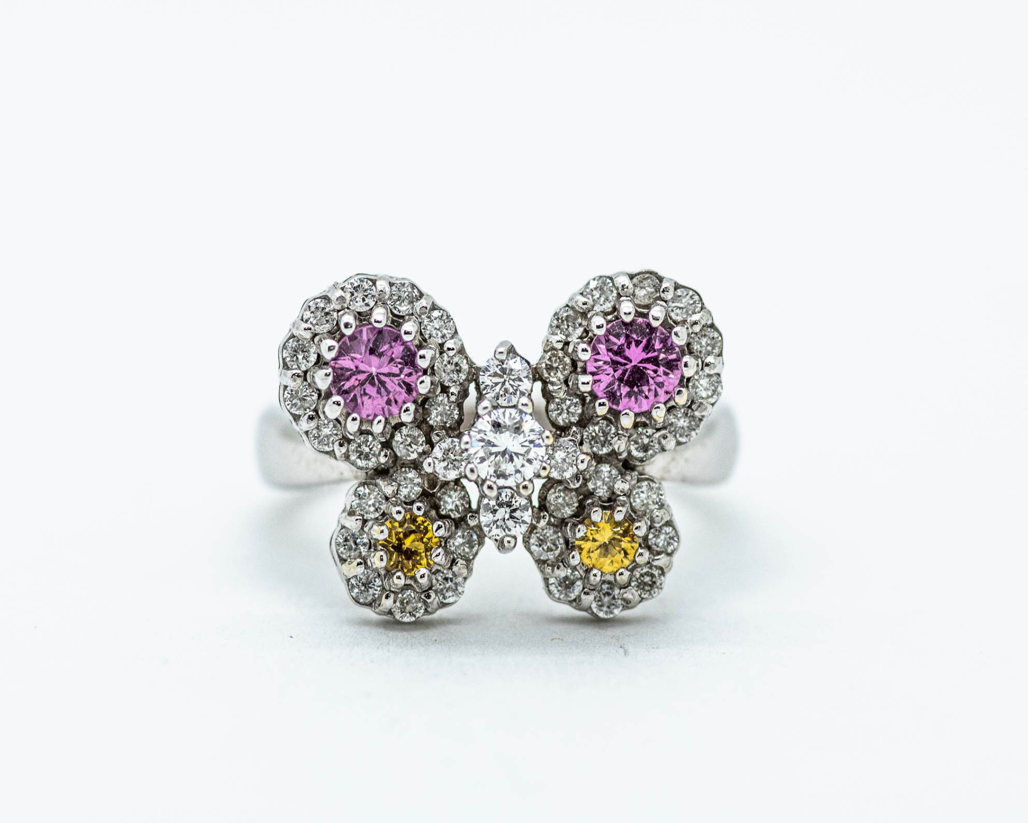 14K White Gold Pink and Yellow Sapphire Diamond Ring | One-of-a-Kind Multi-Gem Cocktail Butterfly Ring | Diamond, Pink Sapphire & Yellow Sapphire