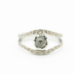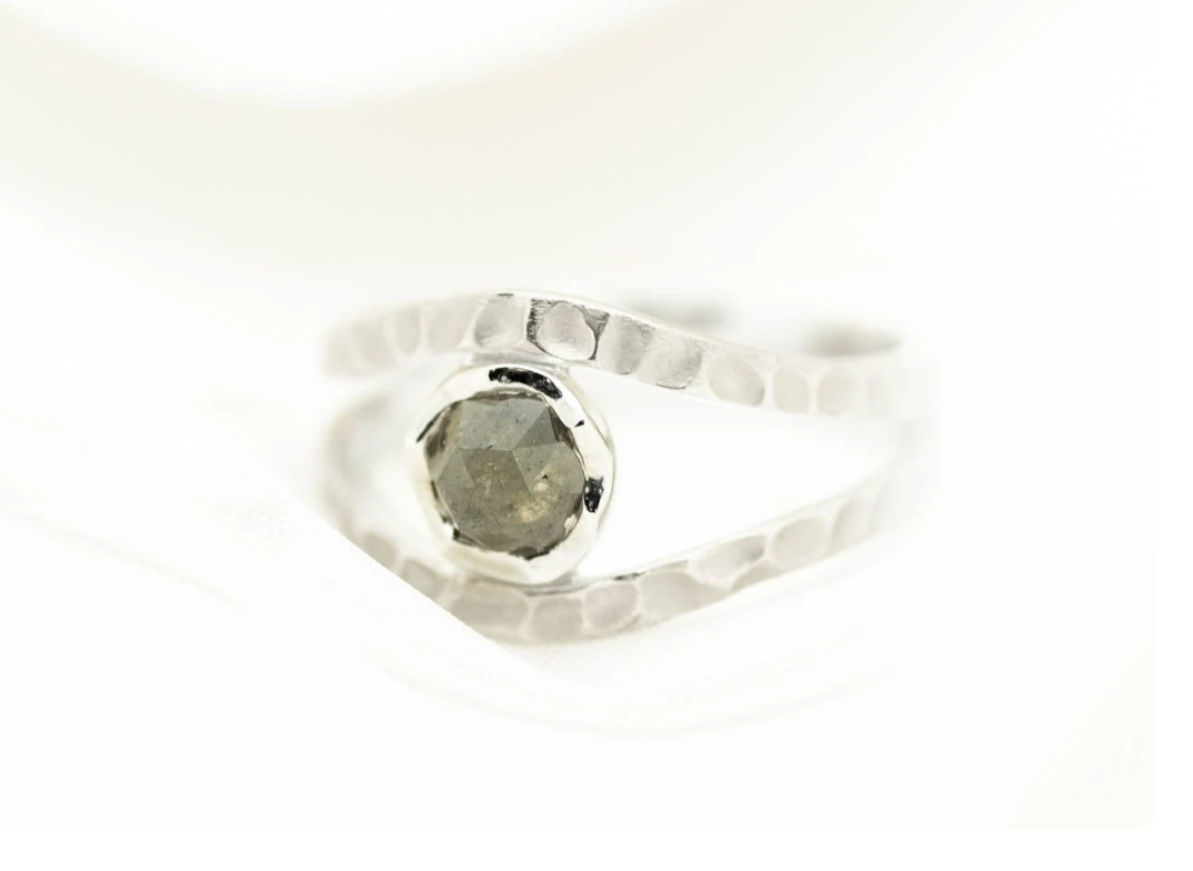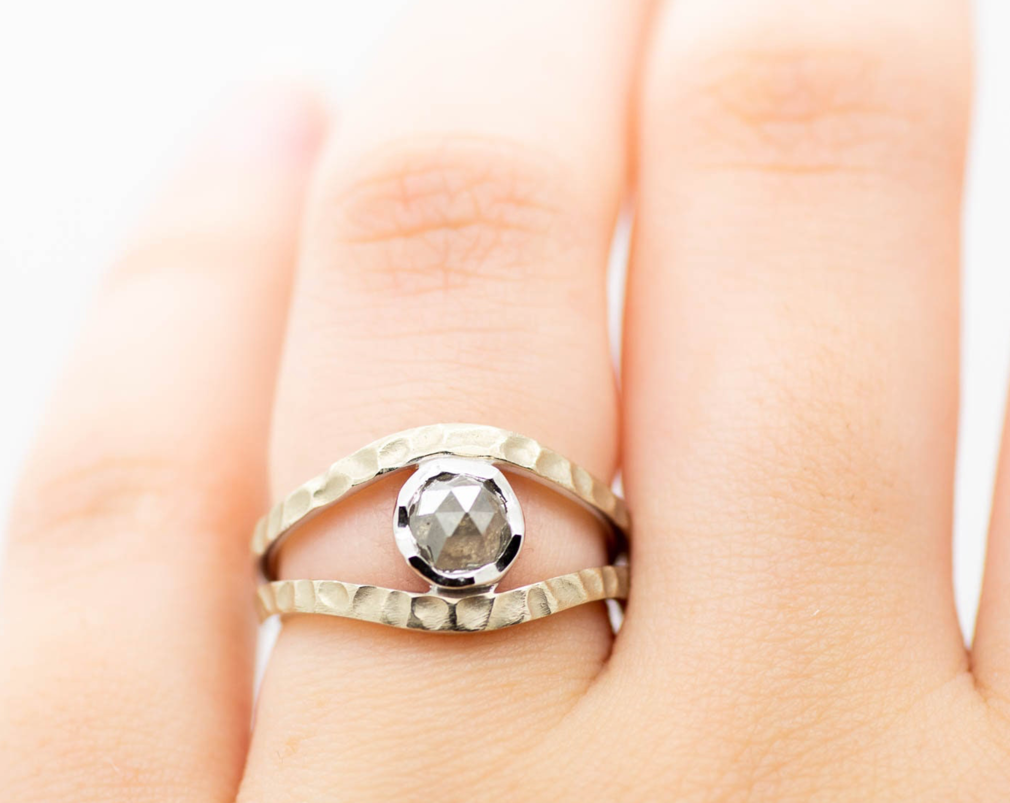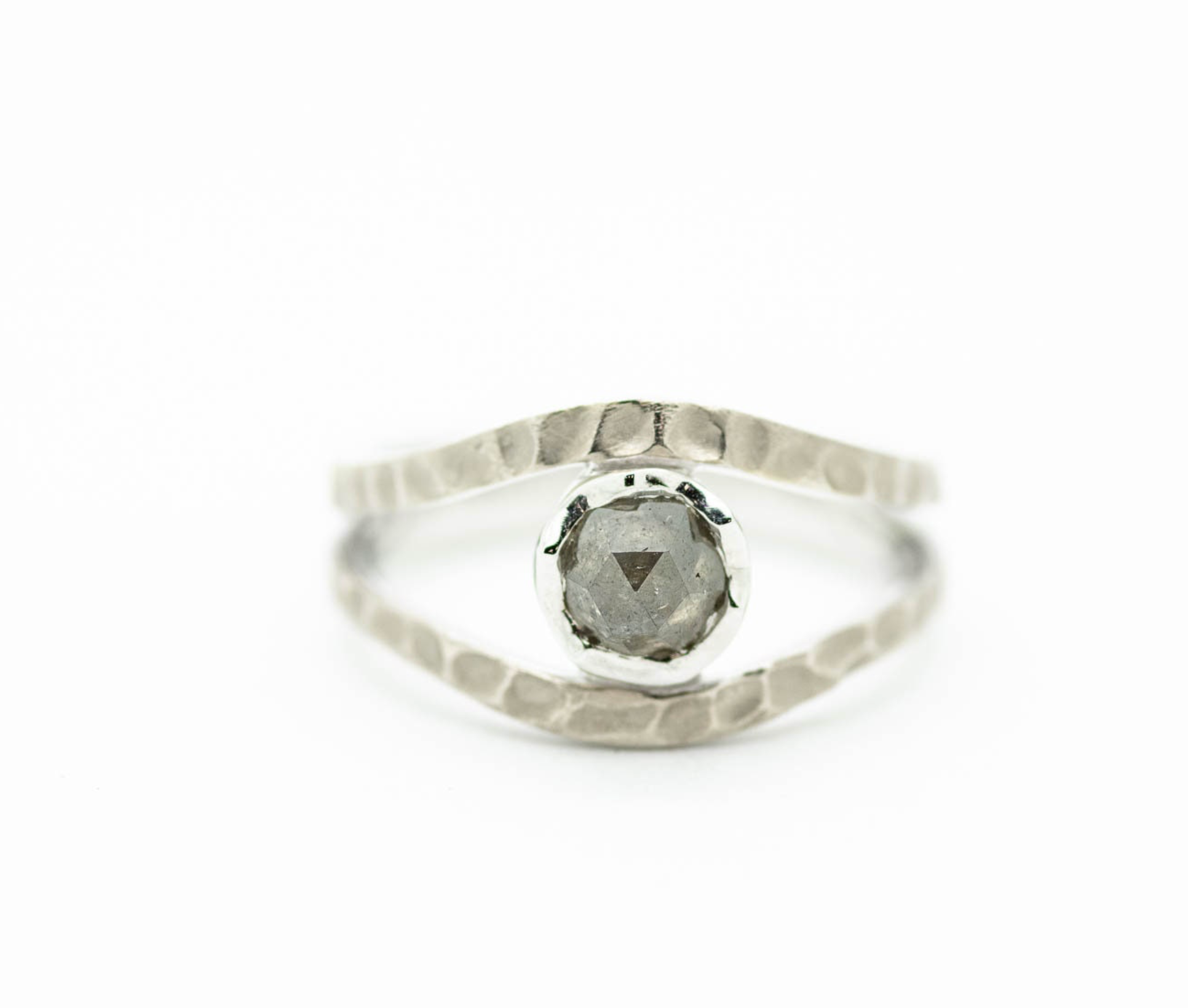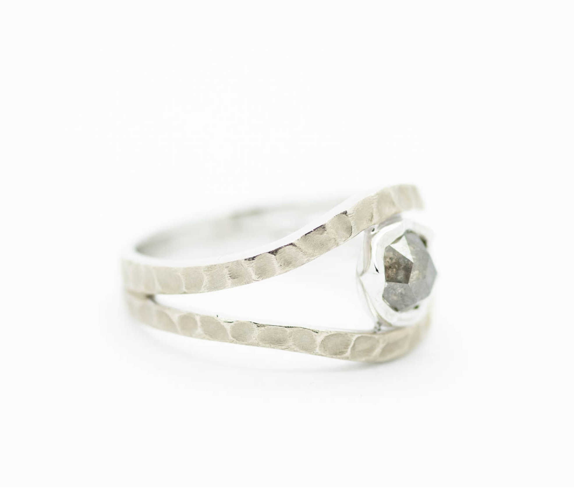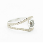 14K White Gold Raw Diamond Hammered Shank Ring – Unique Organic Design| Handmade Natural Diamond Jewelry