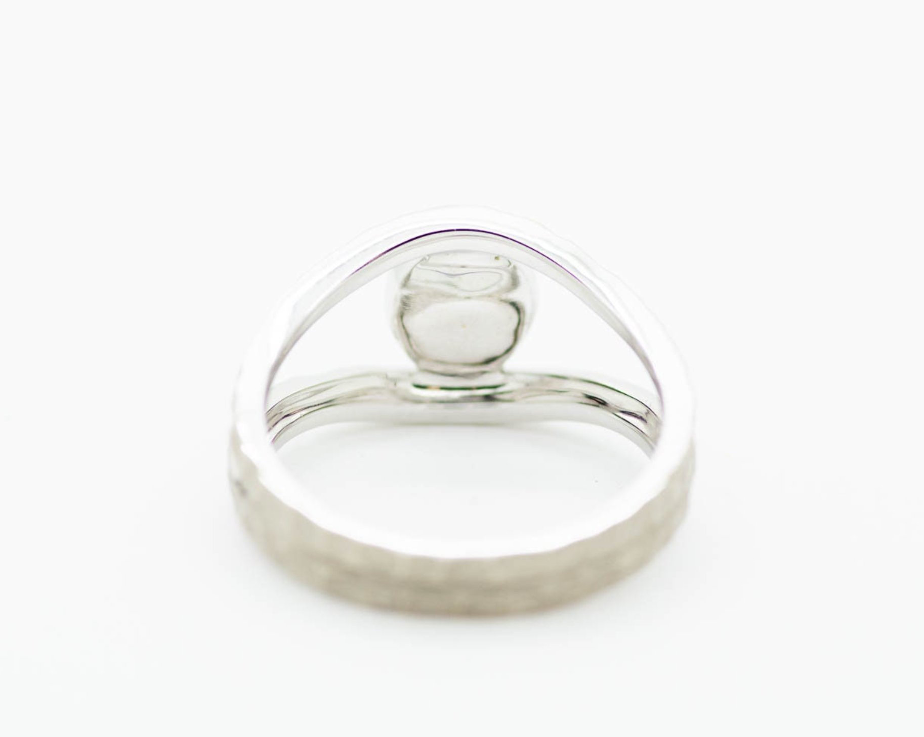The hammered white gold band adds a rustic yet refined touch, blending minimalist style with artisanal craftsmanship. Its unique organic form makes it perfect for those who appreciate natural beauty and understated luxury.