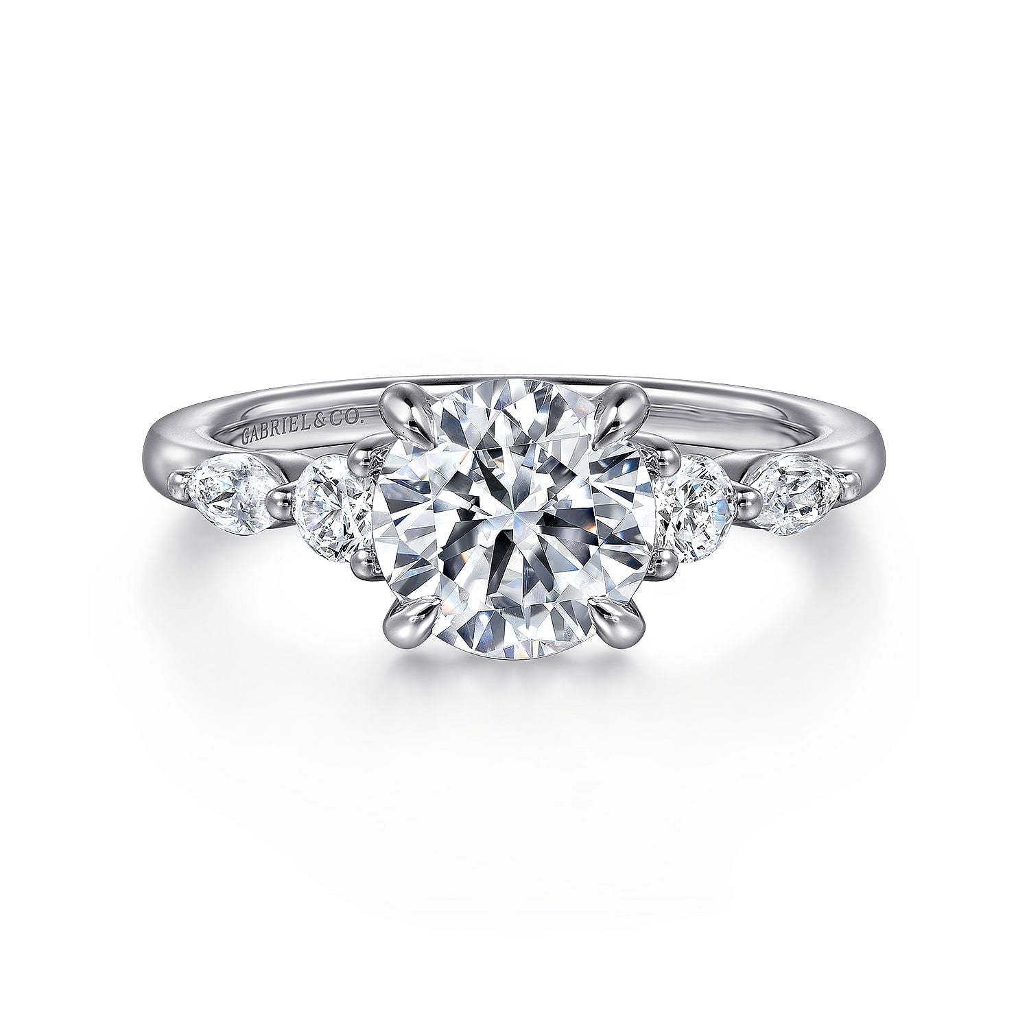 Cian - 14K White Gold Round Five Stone Diamond Engagement Ring
