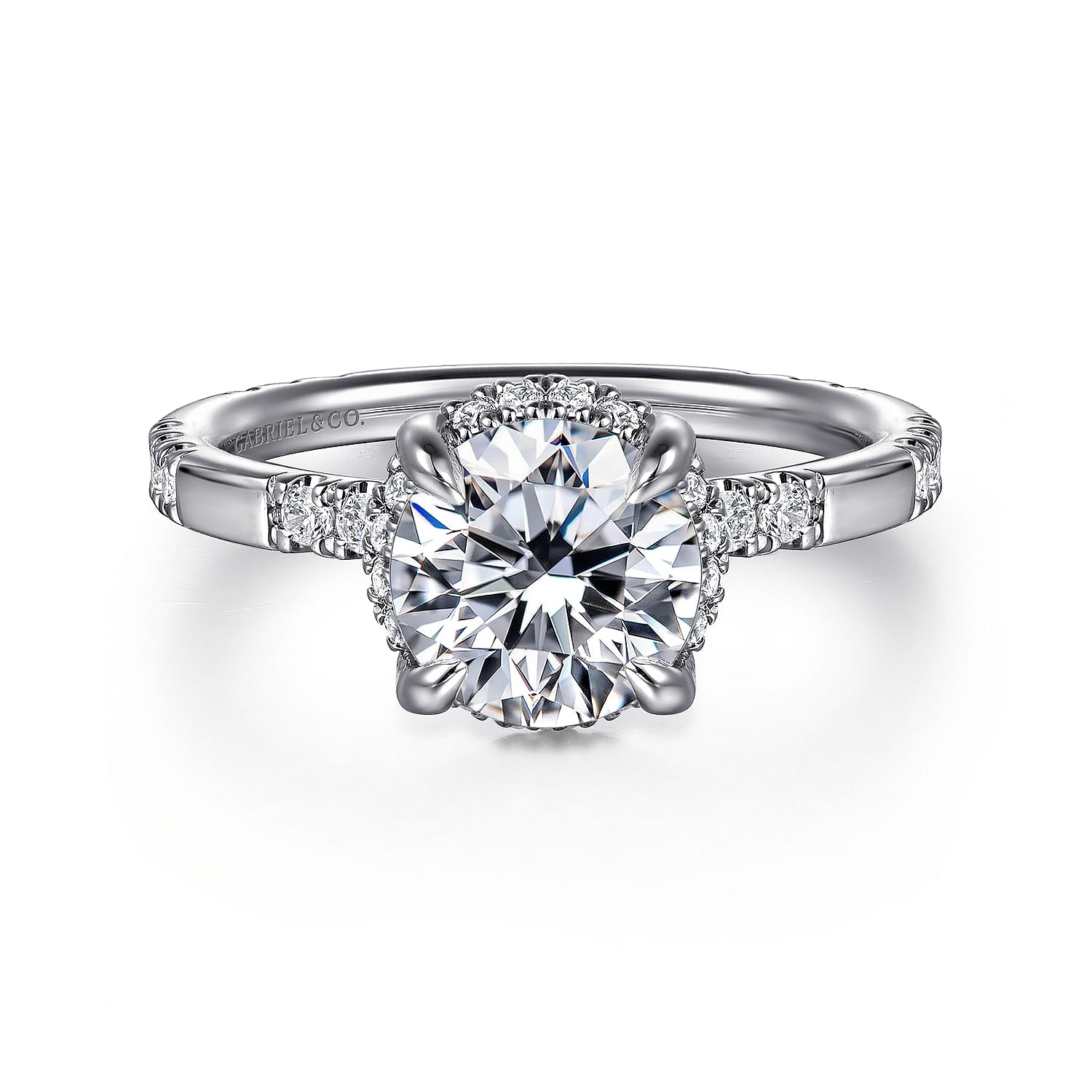 Ocean - 14K White Gold Round Hidden Halo Diamond Engagement Ring