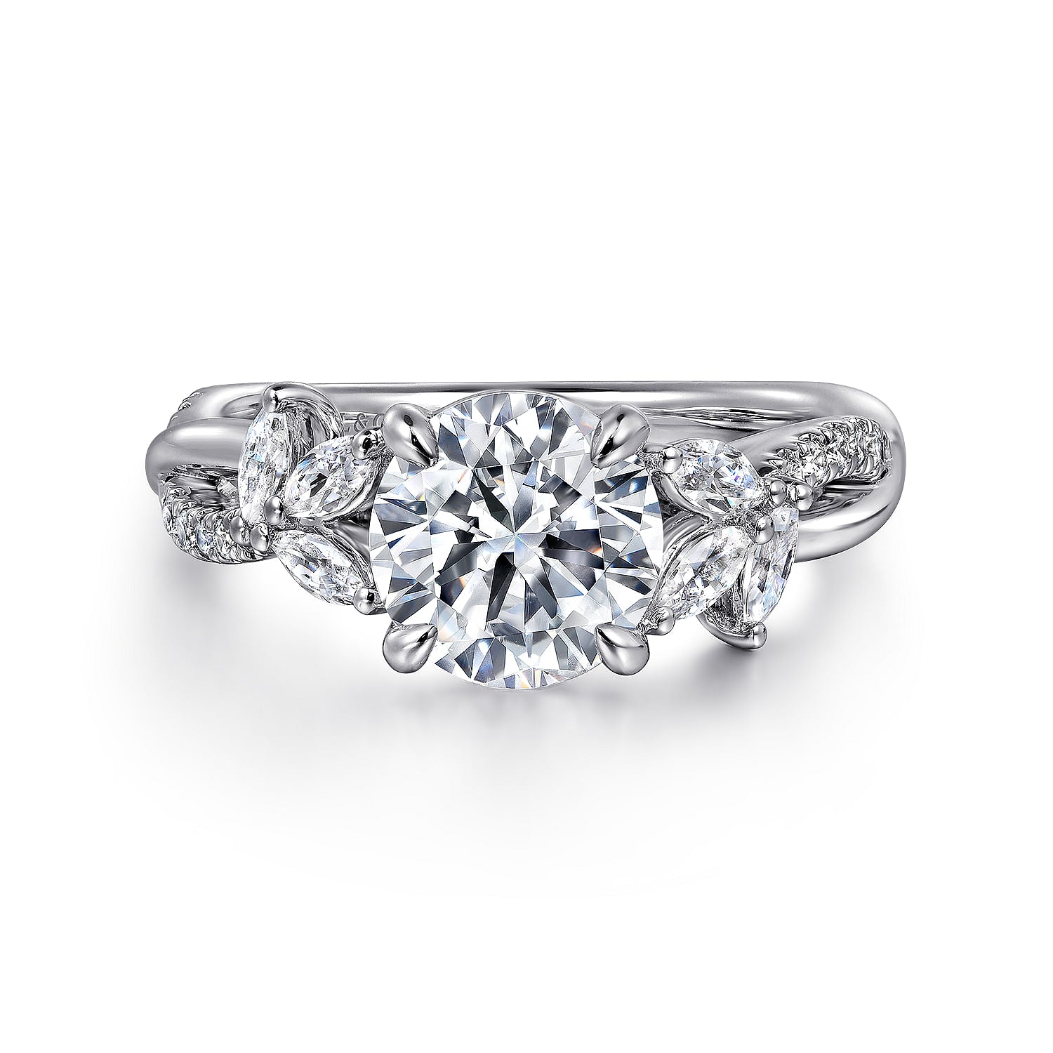 Deisha - 14K White Gold Split Shank Round Diamond Engagement Ring