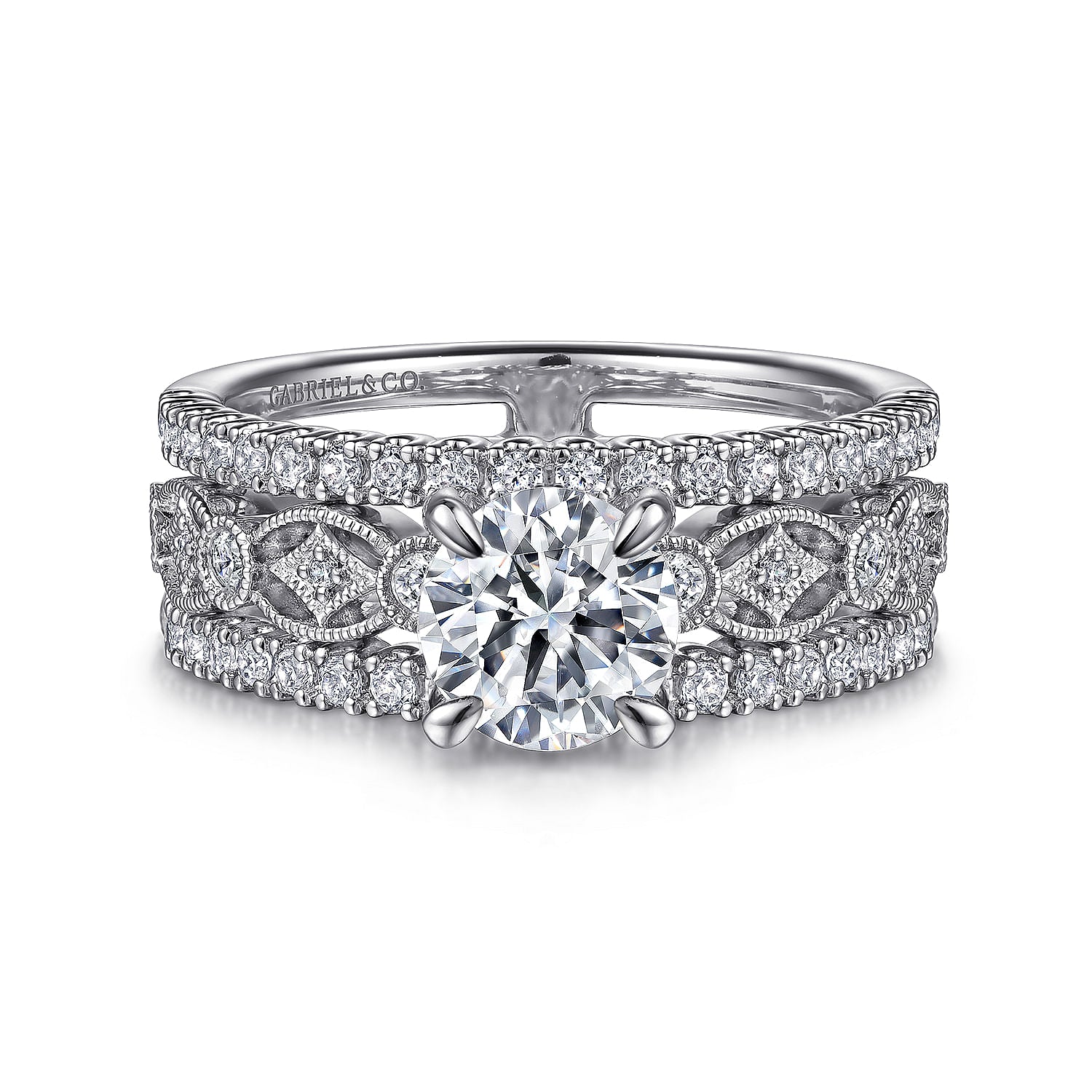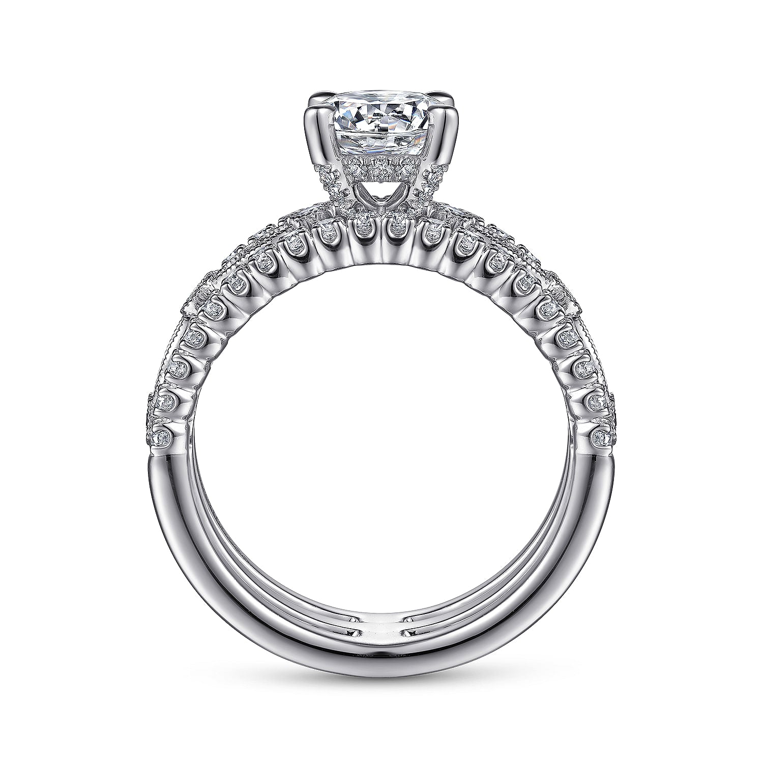 Gemma - 14K White Gold Wide Band Round Diamond Engagement Ring