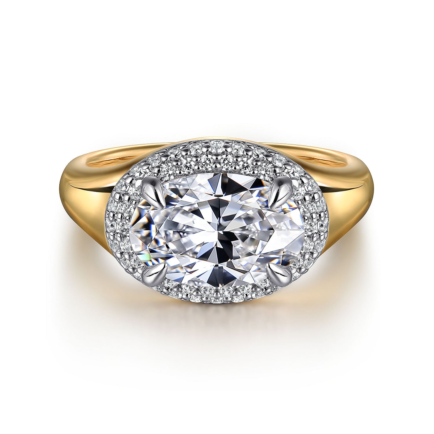 Fillipa - 14K White-Yellow Gold Oval Double Halo Diamond Engagement Ring