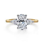Sima - 14K White-Yellow Gold Oval Three Stone Diamond Engagement Ring