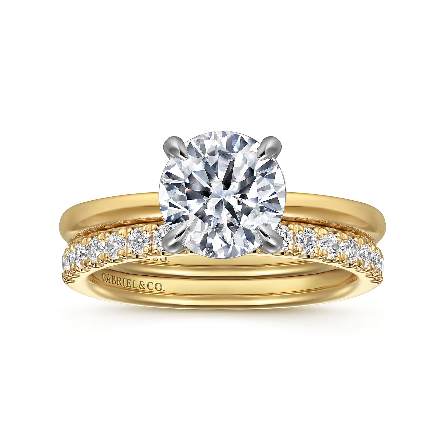 Grasey - 14K White & Yellow Gold Round Solitaire Engagement Ring