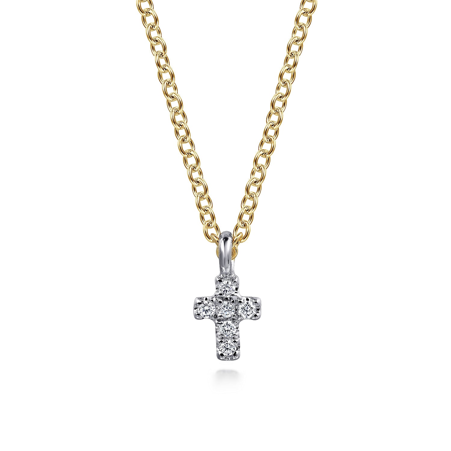 14K Yellow and White Gold Diamond Cross Pendant Necklace