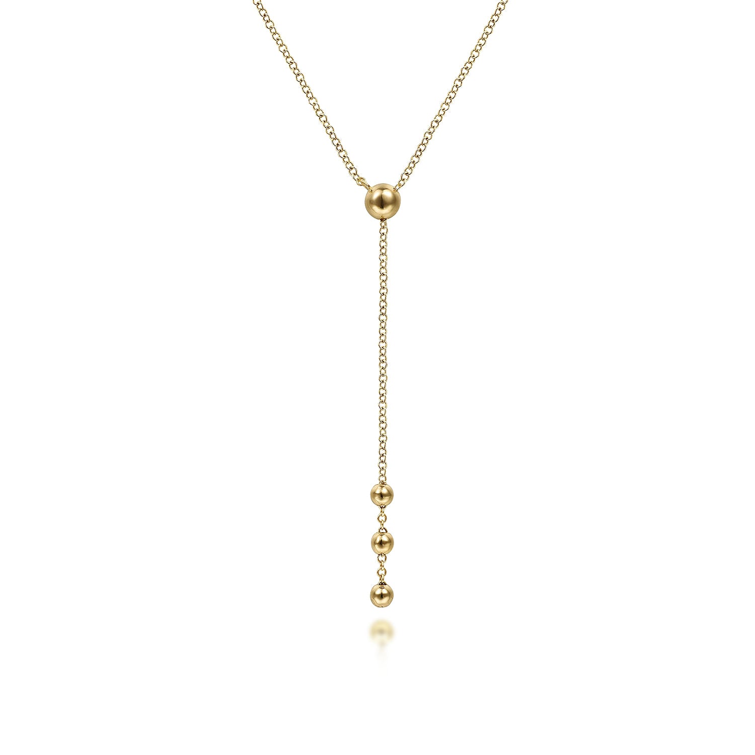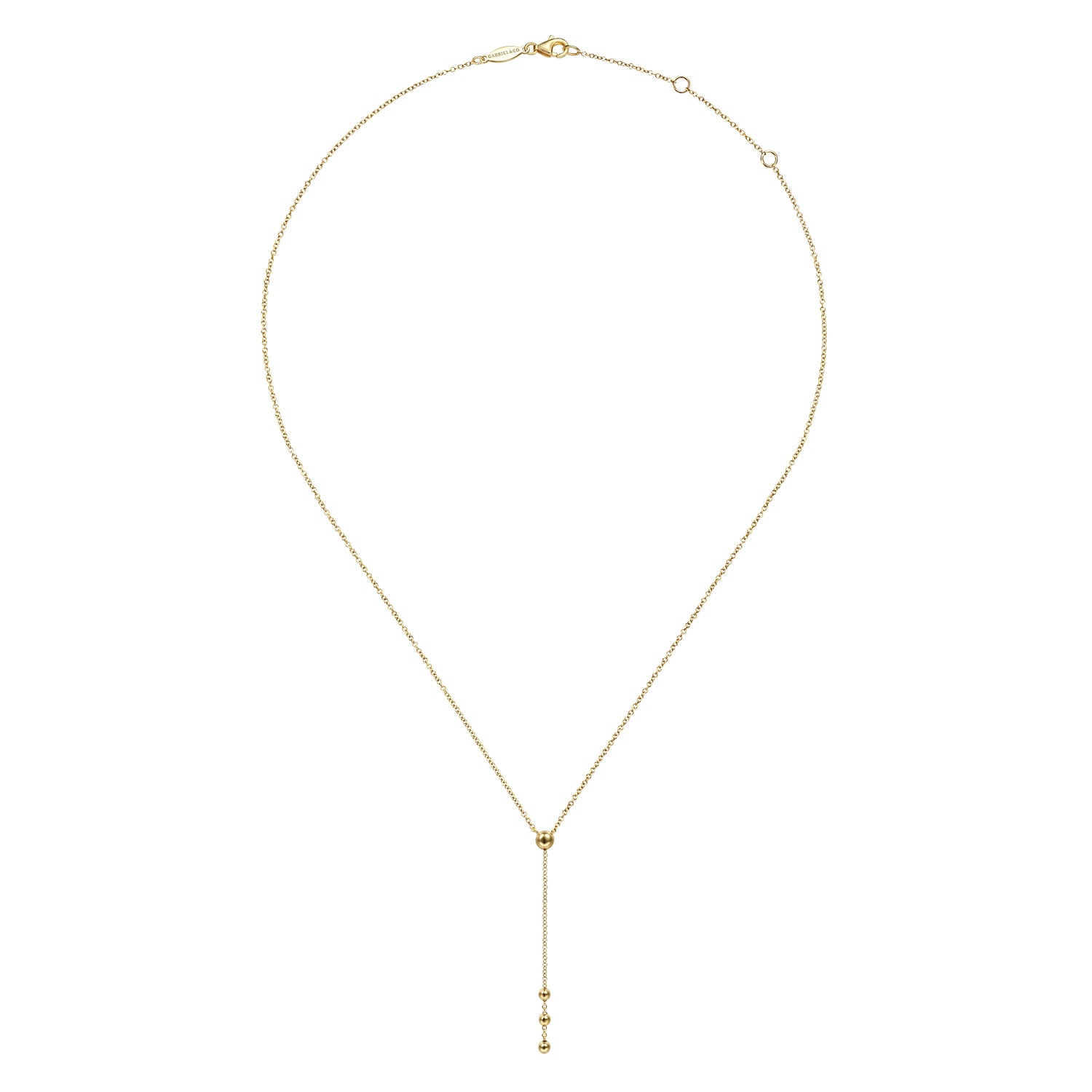 14K Yellow Gold Bujukan Bead Station Y Drop Necklace