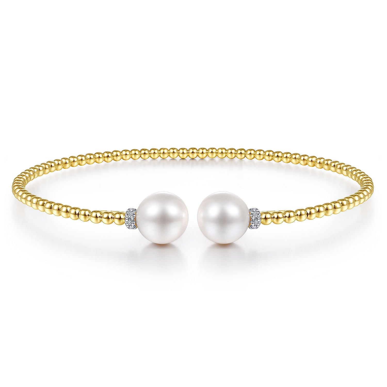 14K Yellow Gold Bujukan Diamond and Pearl Split Bangle