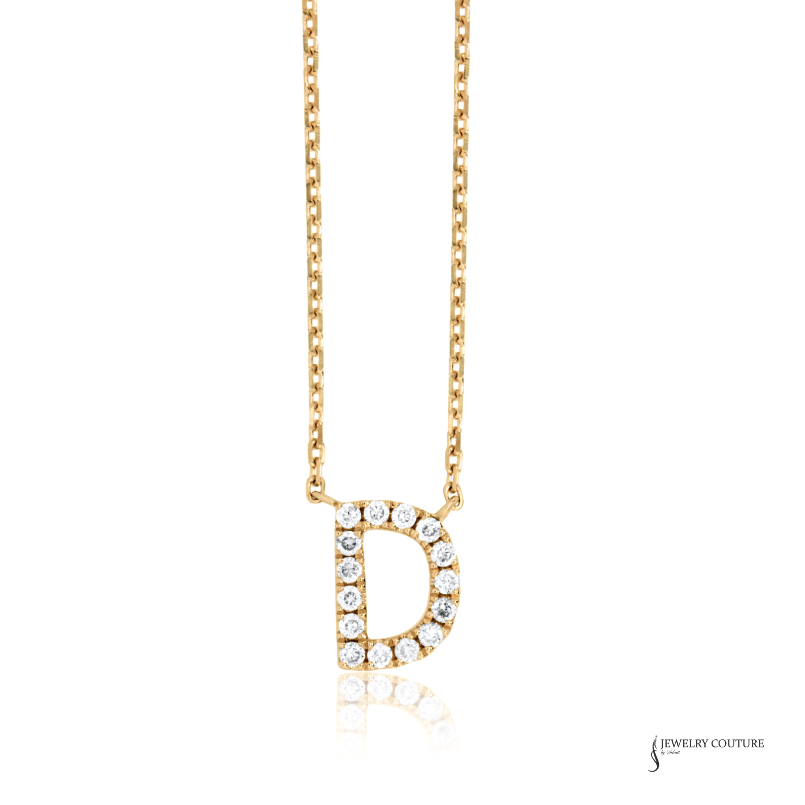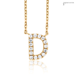 14K Yellow Gold Diamond Letter D Initial Necklace – Adjustable 18” Personalized Pendant