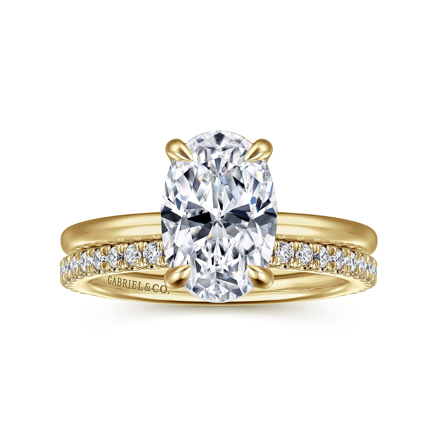 Rainah - 14K Yellow Gold Hidden Halo Oval Diamond Engagement Ring