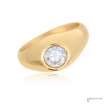 14K Yellow Gold Lab Grown Diamond Ring Bezel Set Solitaire Ring Signet Unisex