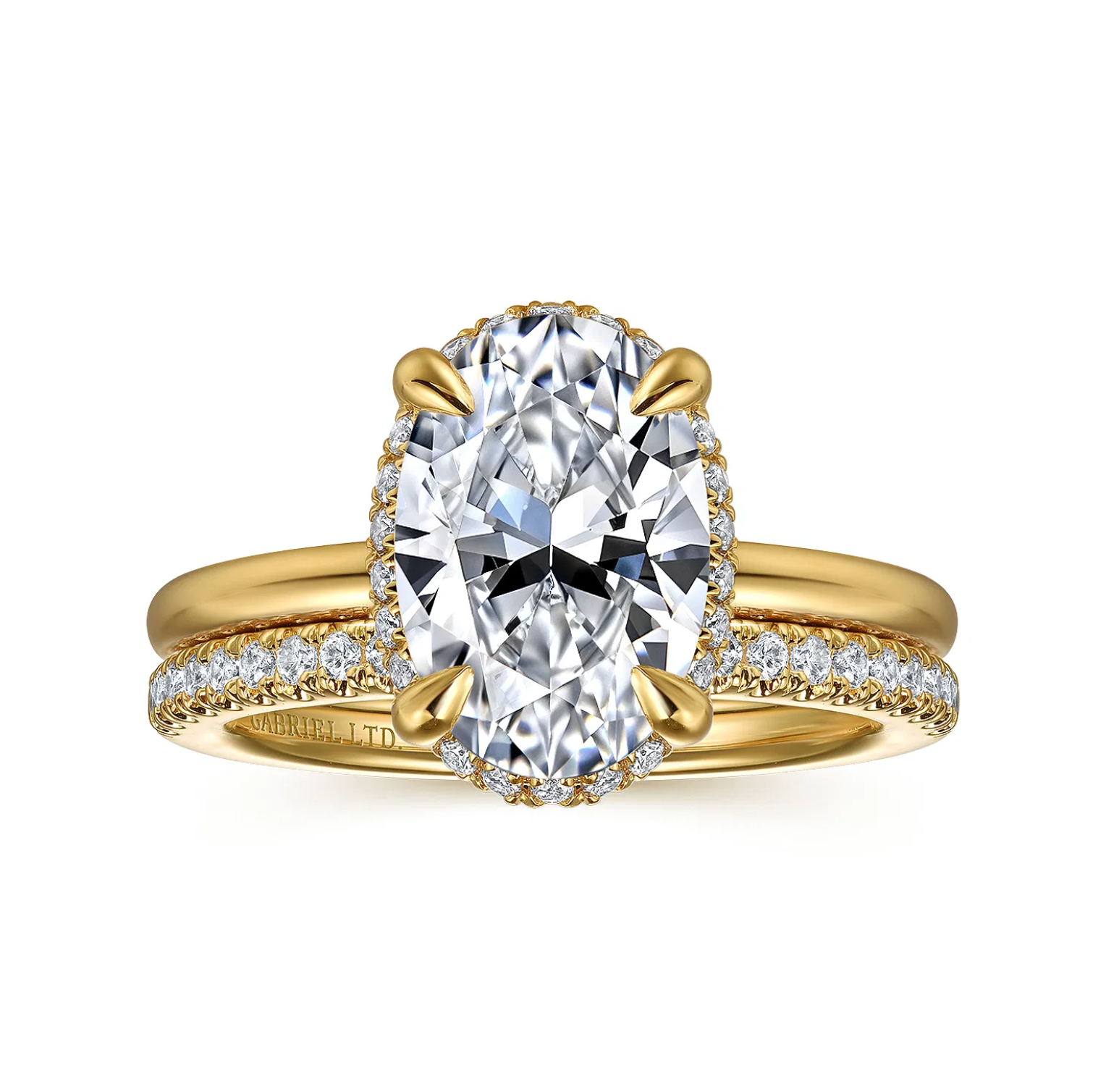 Bonnie - 14K Yellow Gold Oval Hidden Halo Diamond Engagement Ring