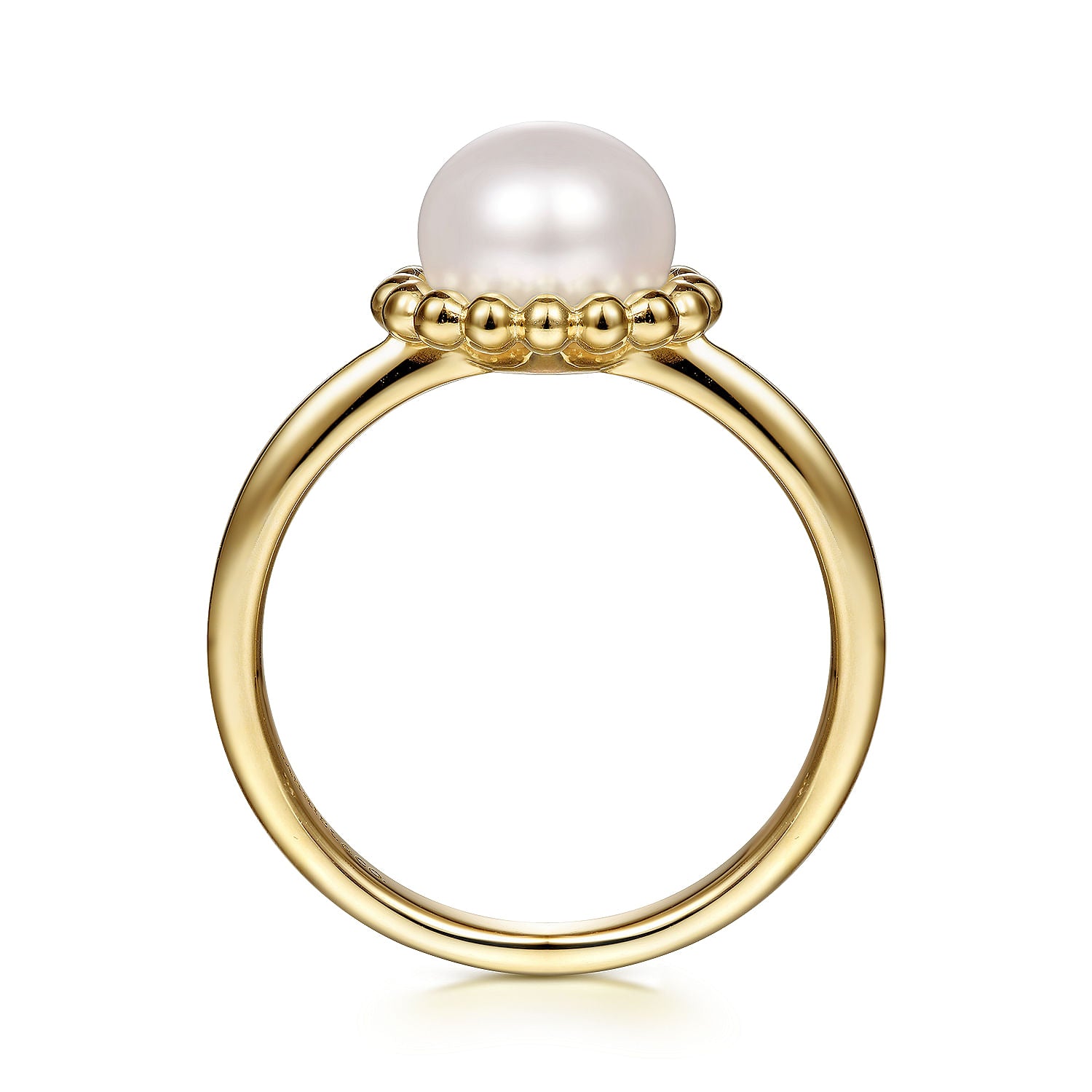 14K Yellow Gold Pearl Ring with Bujukan Beaded Halo