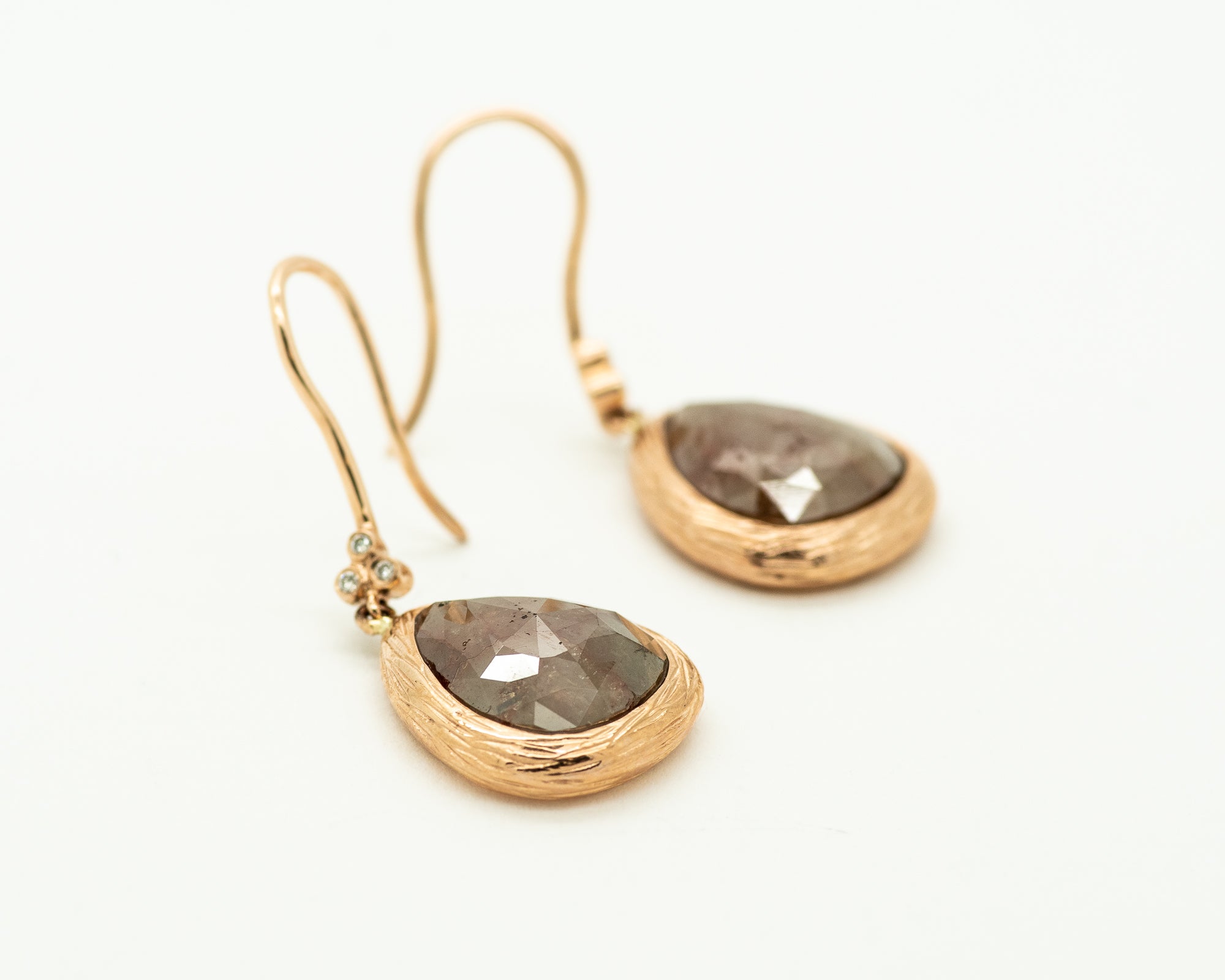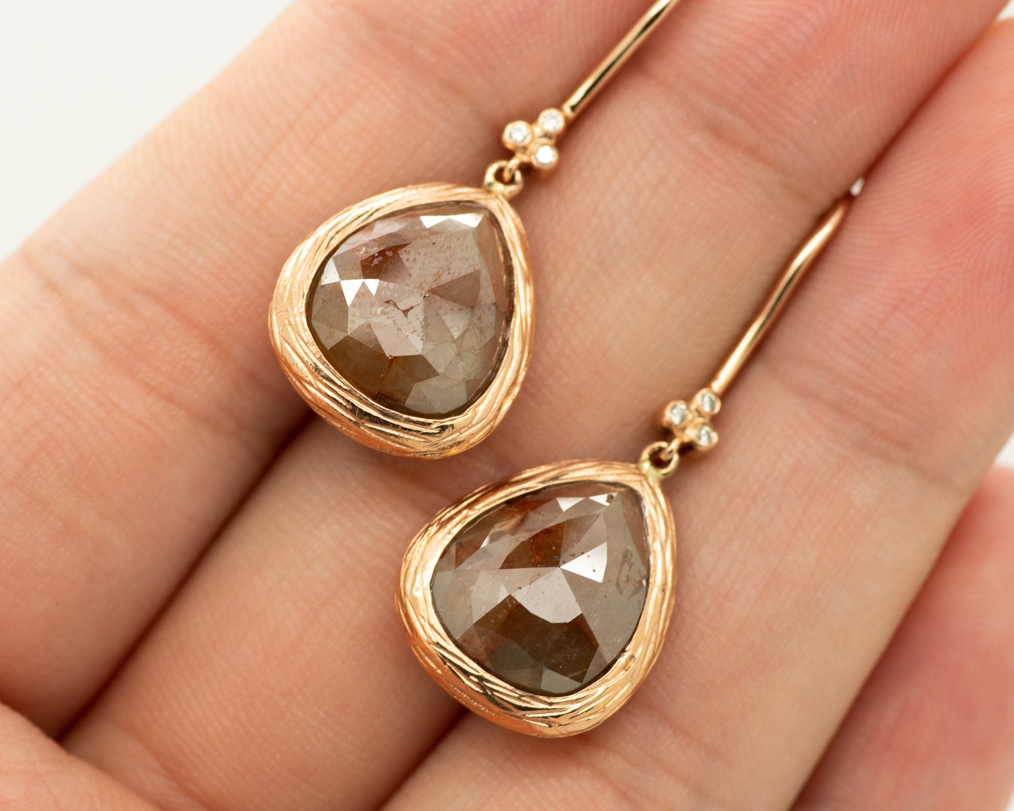 14K Yellow Gold Raw Diamond Drop Earrings Natural Rough Diamonds with Accent Diamonds