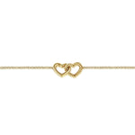 14K Yellow Gold Rope Entwined Hearts Chain Bracelet