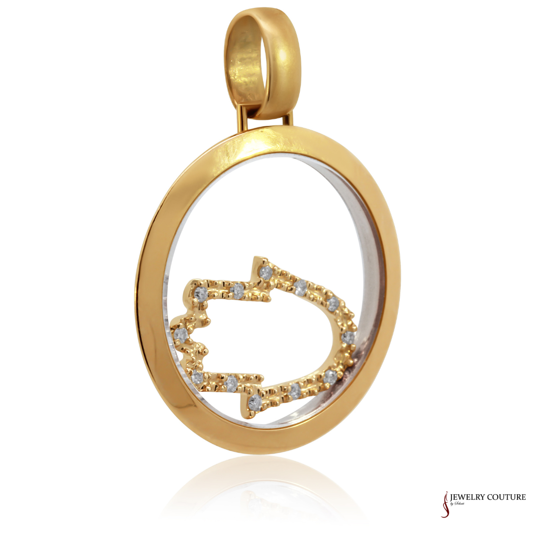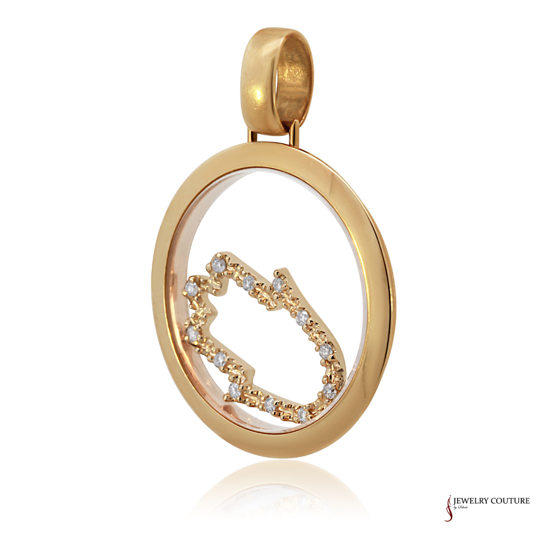 14KT Yellow Gold Diamond Floating Hamsa Pendant – Elegant Protection Jewelry