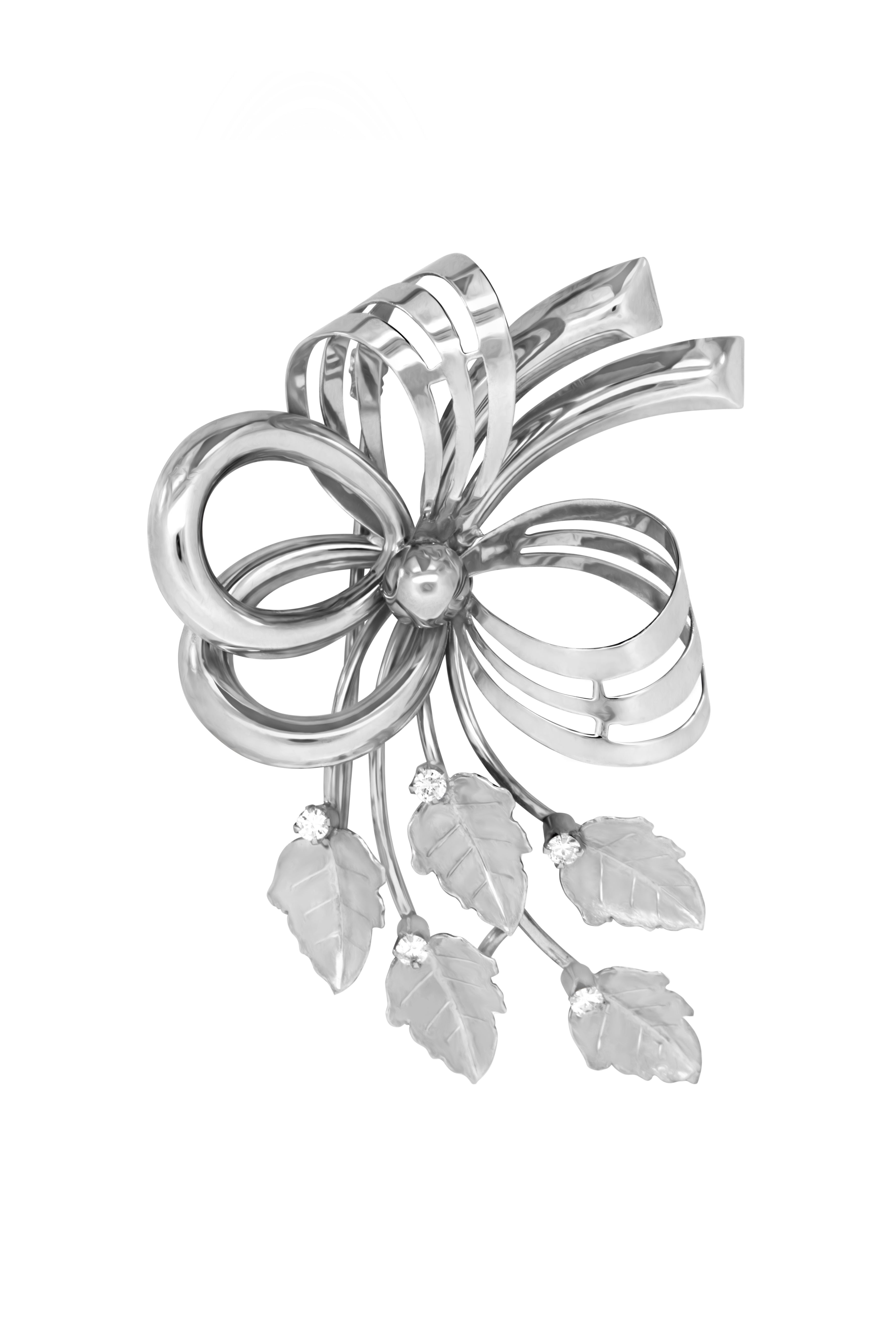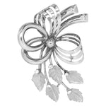 18K White Gold Bow & Leaf Brooch with 0.25ct Diamonds – Elegant Vintage-Inspired Pin