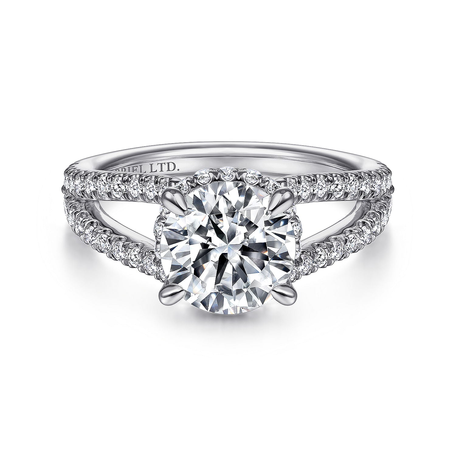 Dominga - 18K White Gold Round Split Shank Diamond Engagement Ring