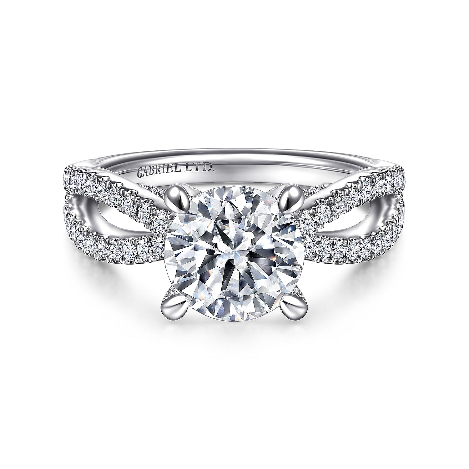 Unice - 18K White Gold Split Shank Round Diamond Engagement Ring