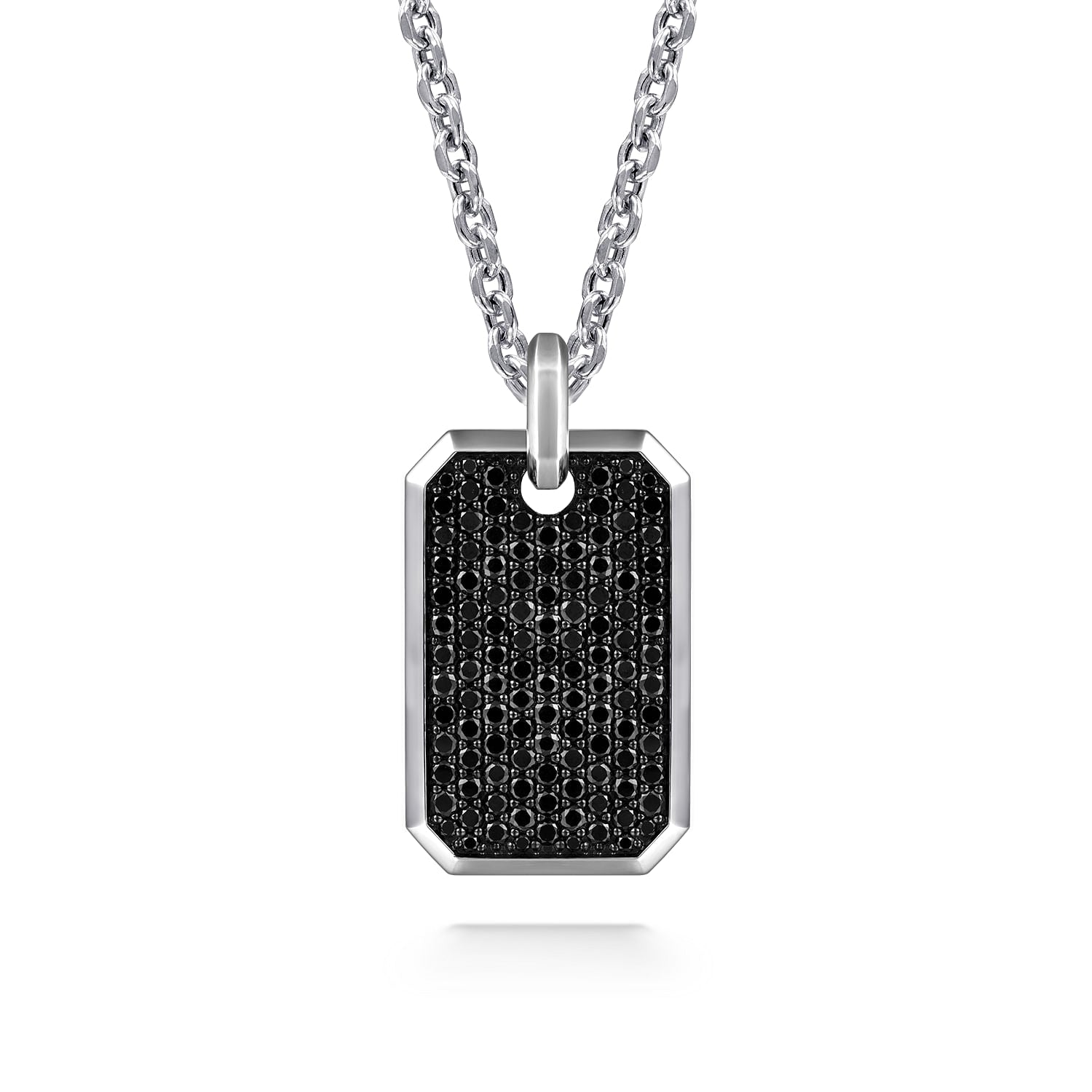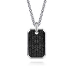 22 Inch 925 Sterling Silver Black Spinel Dog Tag Pendant Necklace