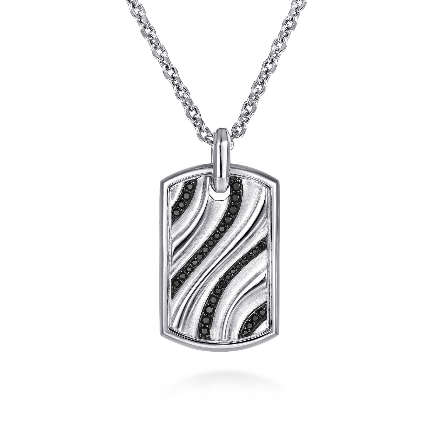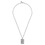 22 Inch 925 Sterling Silver Black Spinel Dog Tag Pendant Necklace
