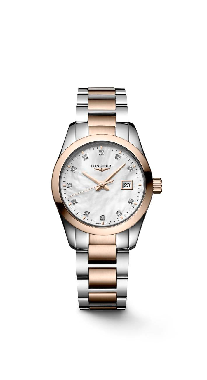 LONGINES WOMANS WATCH, 29MM, STAINLESS STEEL TT PVD, MOP DIAL,.055CT TWD, SAPPHIRE CRYSTAL, 5 BAR.