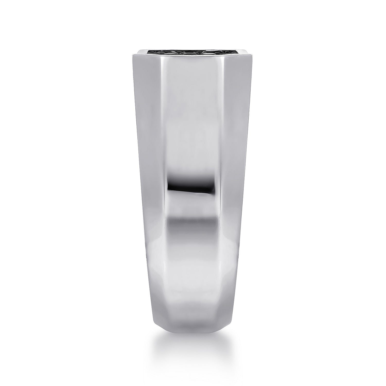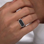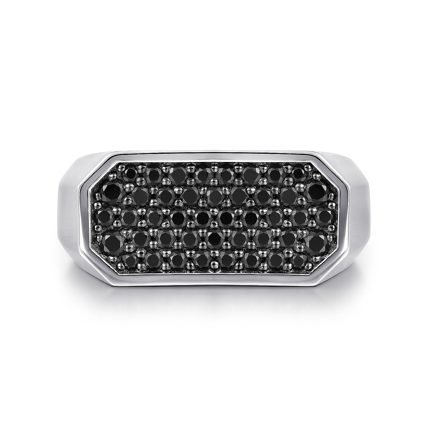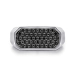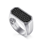925 Sterling Silver Black Spinel Pave Men's Ring in Sand Blast Finish
