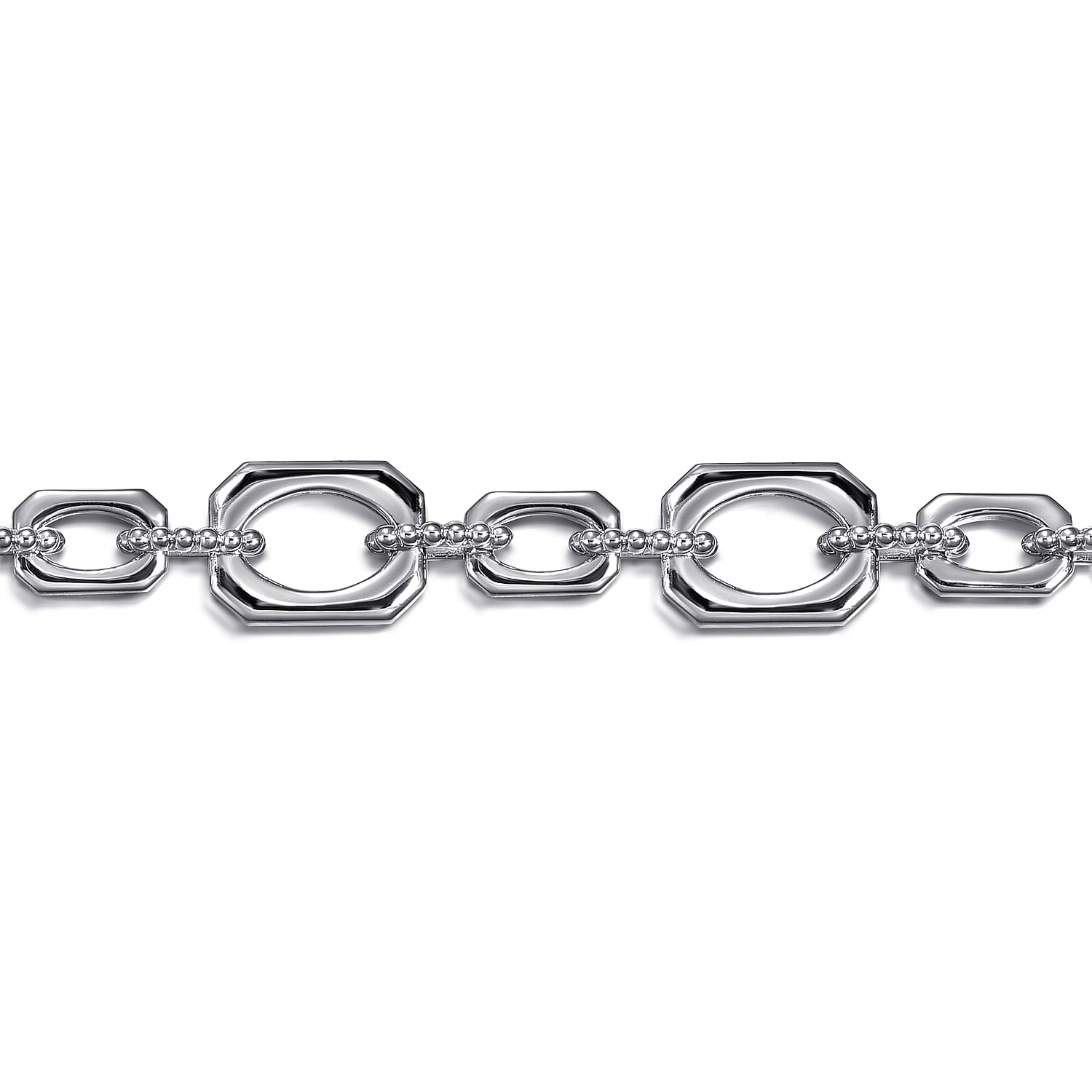 925 Sterling Silver Bujukan And Elongated Octagon Link Chain Bracelet