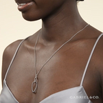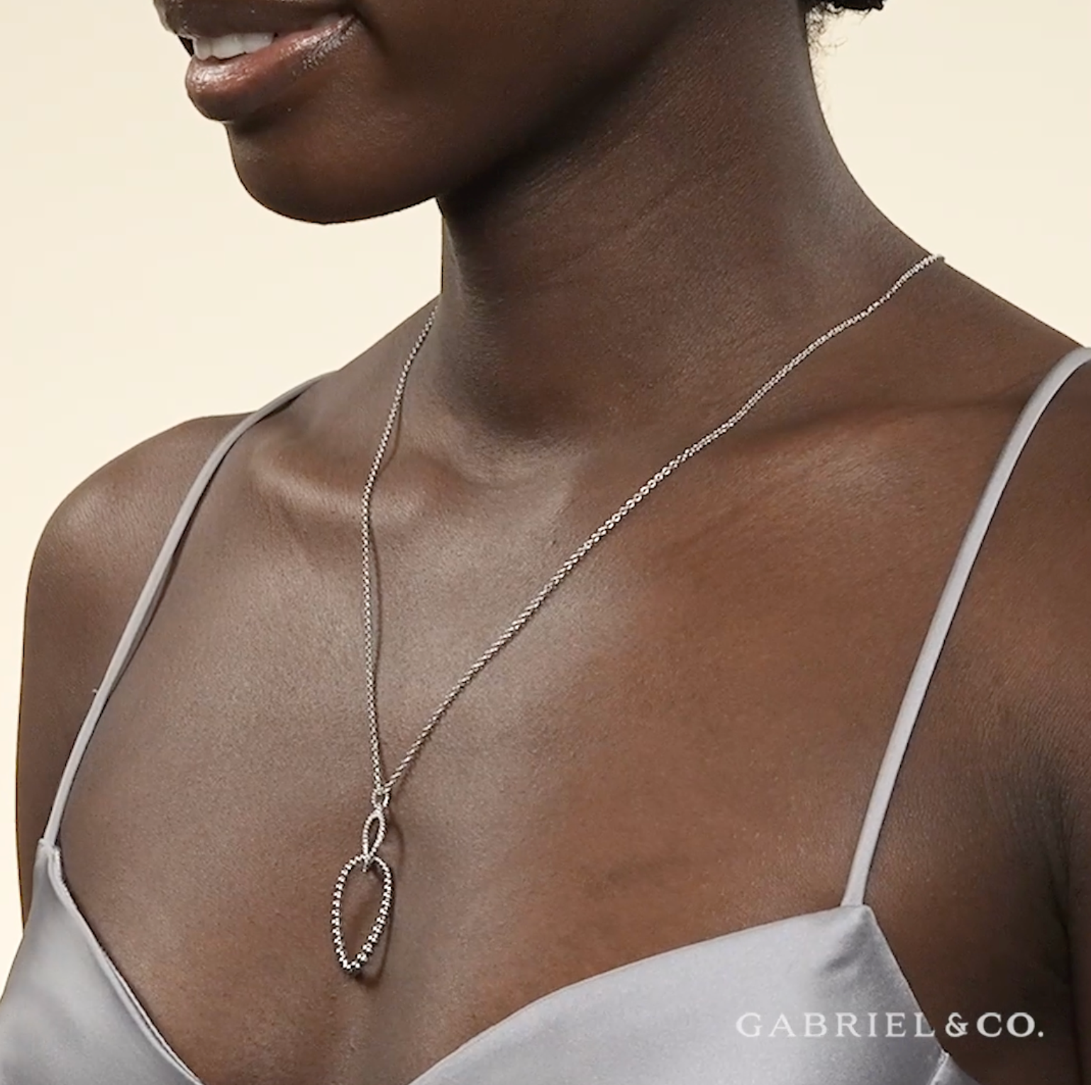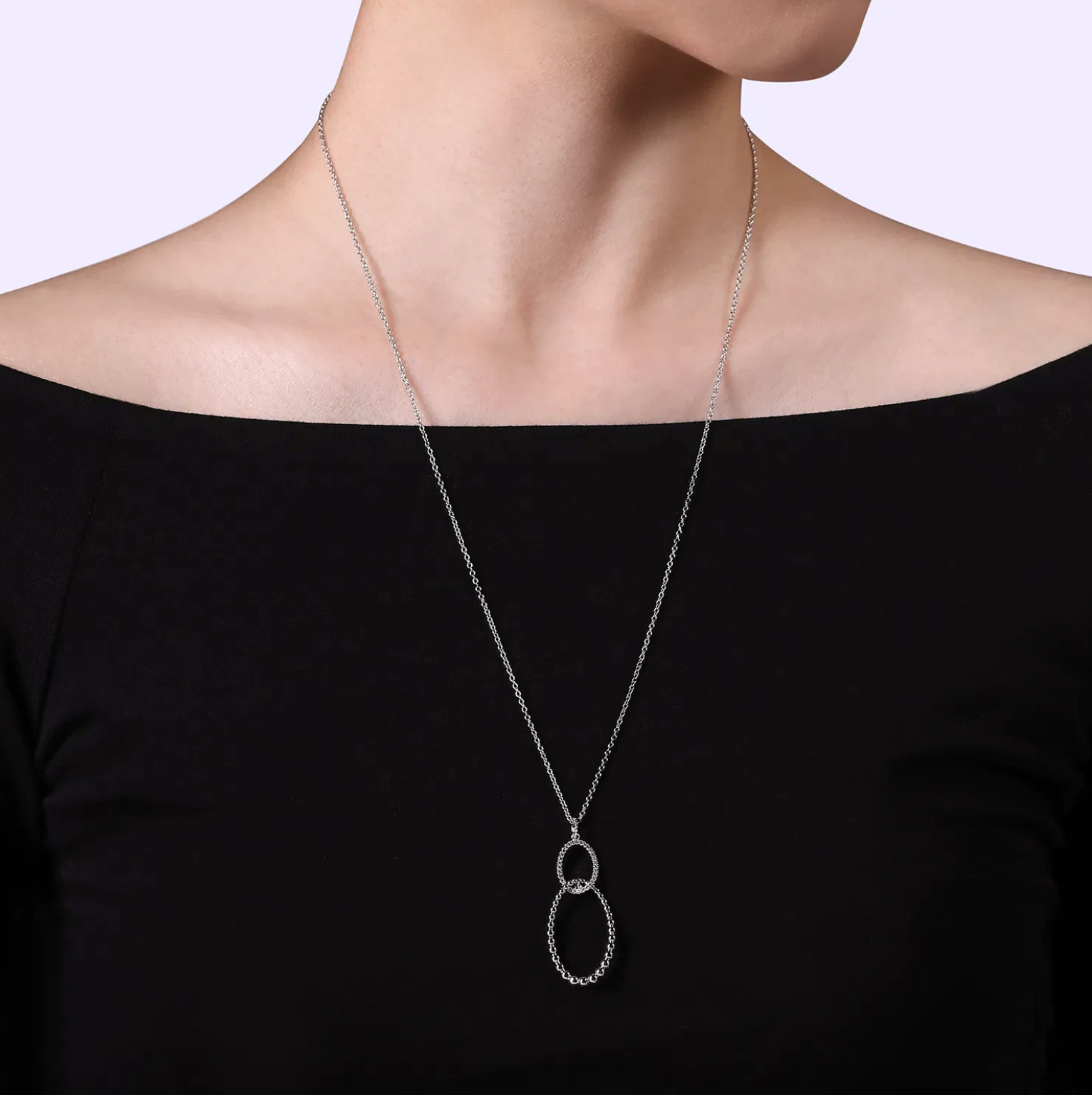 Dazzling white sapphires and sophisticated Bujukan beads adorn this pendant necklace suspended from an adjustable 24" cable chain. The 925 sterling silver pendant is comprised of two interconnected oval links. The smaller link is encrusted with pavé white sapphires while the larger link showcases silver beads buffed to a high polish.