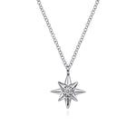 925 Sterling Silver Diamond Starburst Pendant Necklace