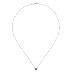 This timeless sterling silver necklace showcases a bezel set round garnet accented by a sensational round accent diamond.