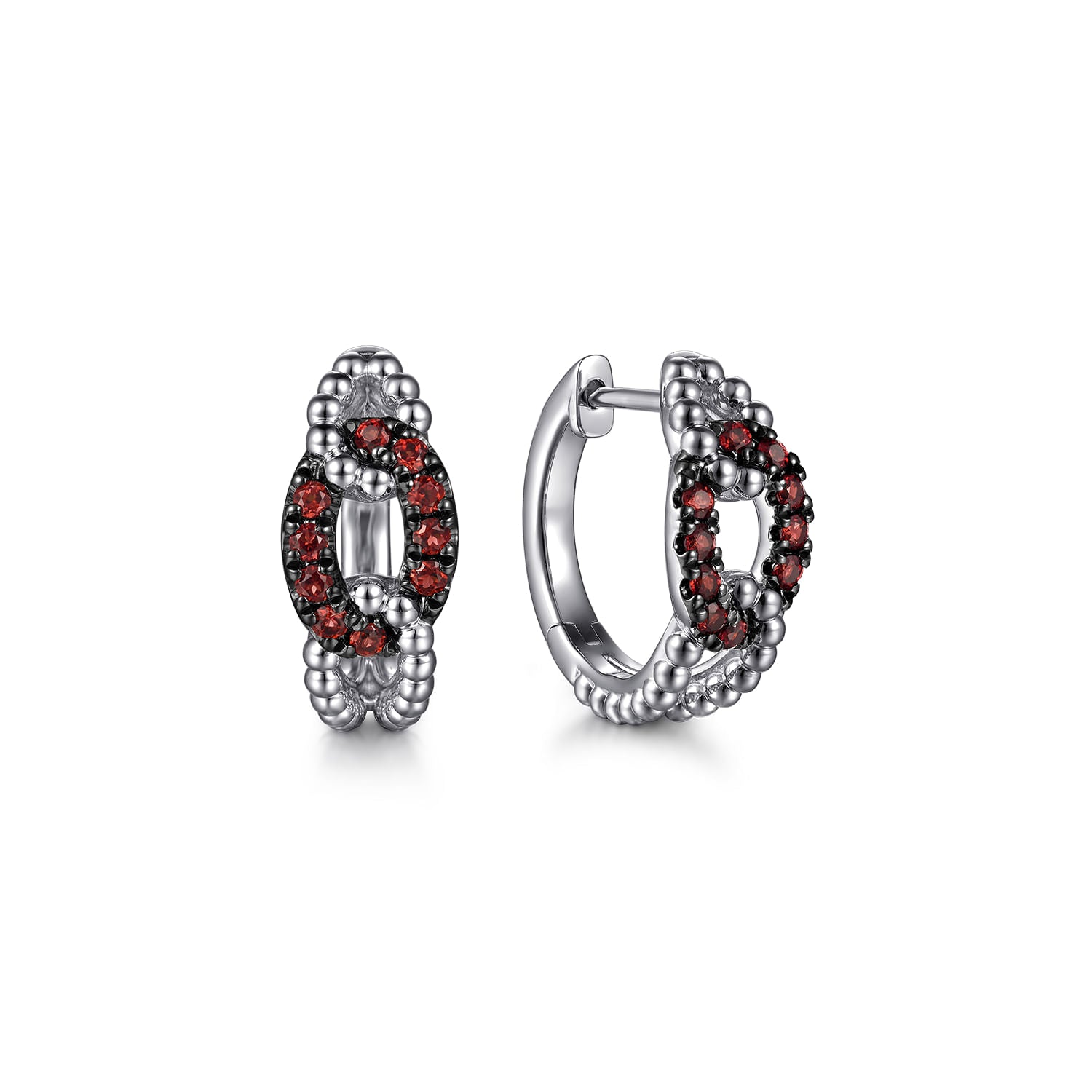 925 Sterling Silver Garnet Bujukan Link Huggie Earrings In-Store