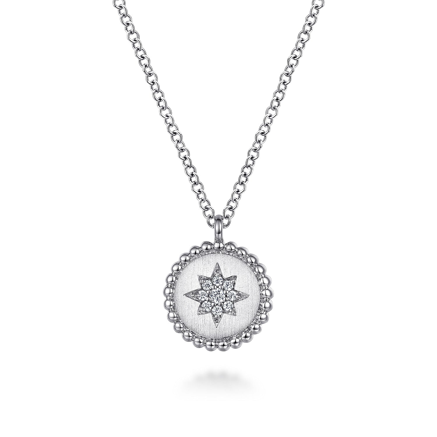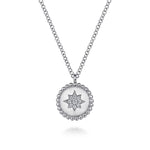925 Sterling Silver Round Star Pendant Necklace
