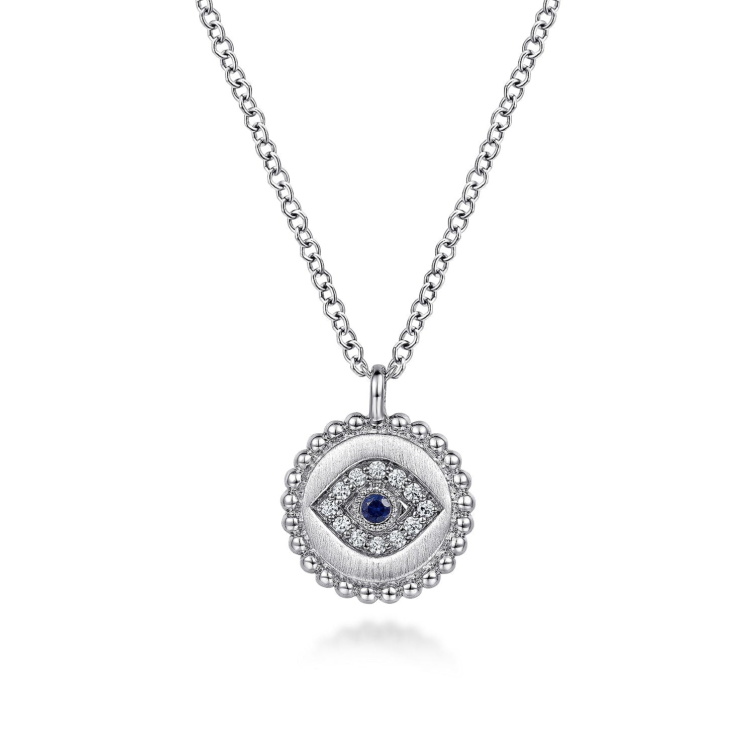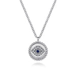 925 Sterling Silver Sapphire and Diamond Evil Eye Pendant Necklace