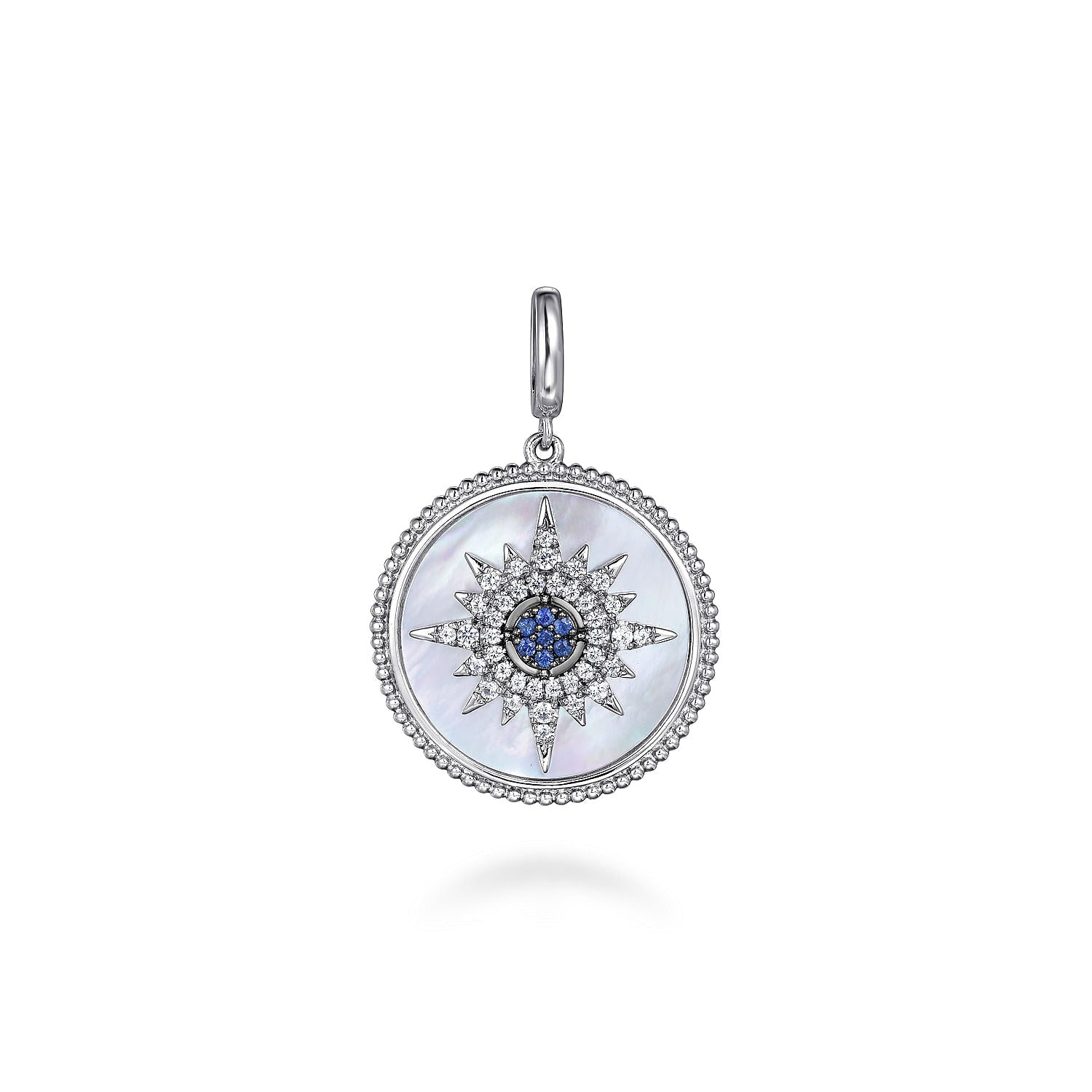 925 Sterling Silver Starburst Blue Sapphire and White Sapphire Bujukan Medallion Pendant in size 24mm