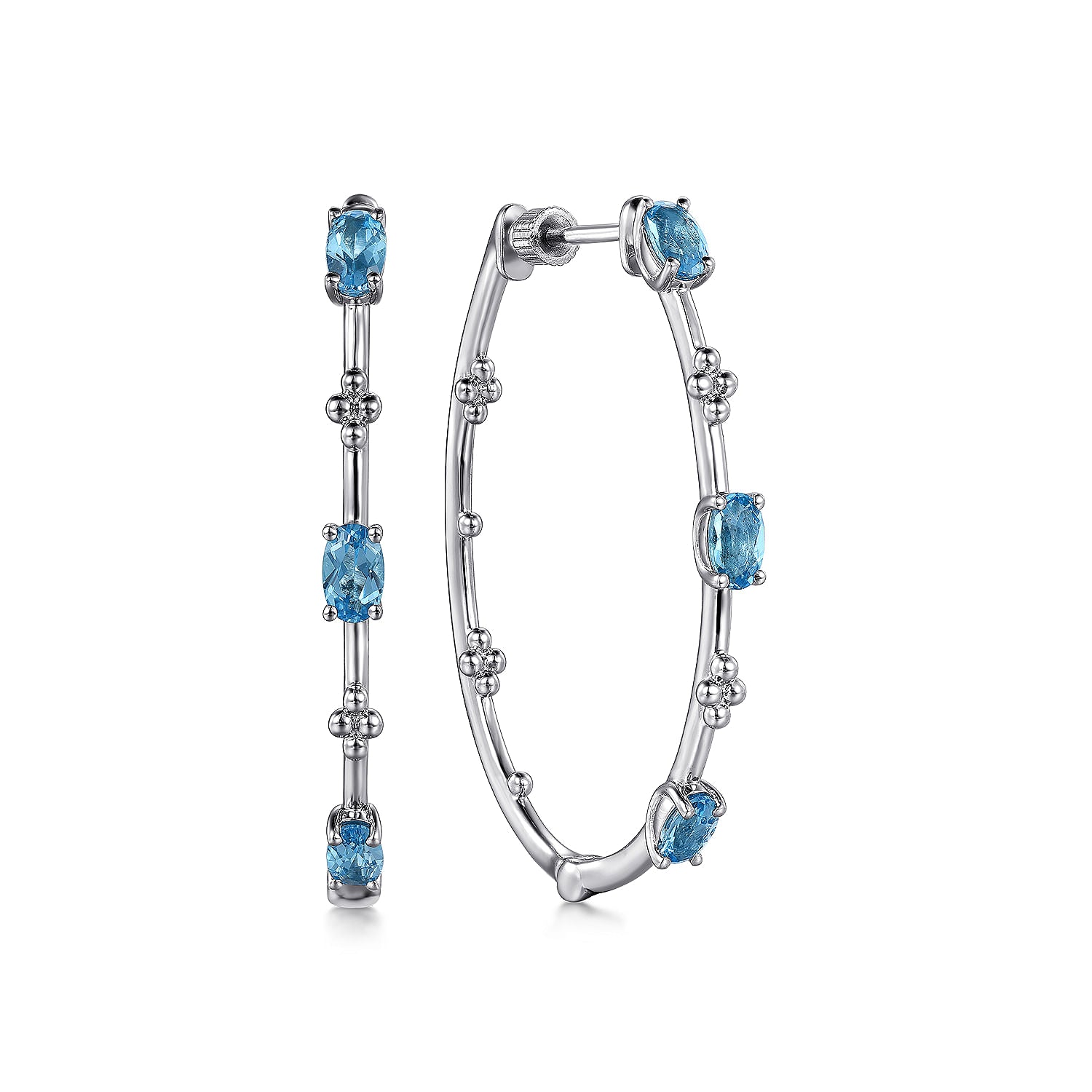925 Sterling Silver Swiss Blue Topaz Bujukan Classic 40mm Hoop Earrings
