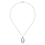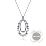 This oval pendant necklace has a light and airy feel perfect for pairing with easy going ensembles. The pendant features two layered silhouettes, one smooth and one beaded, connected to a slim cable chain via a sparkling white sapphire bale. Slip on this 925 sterling silver and white sapphire necklace for instant sophistication.