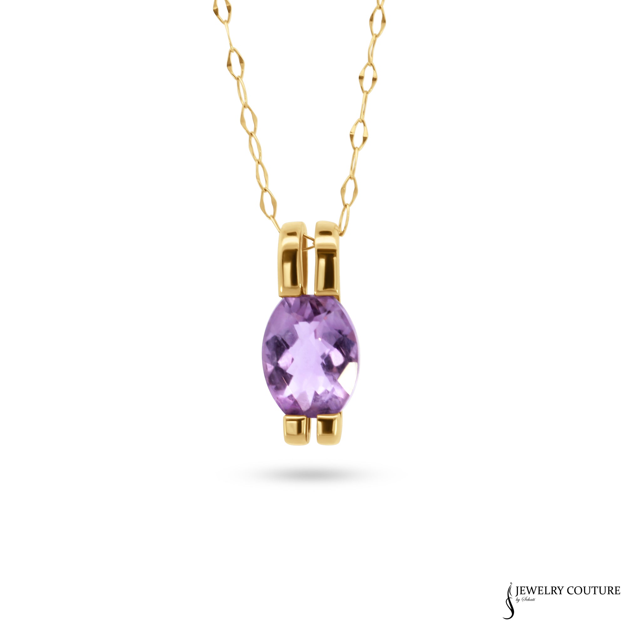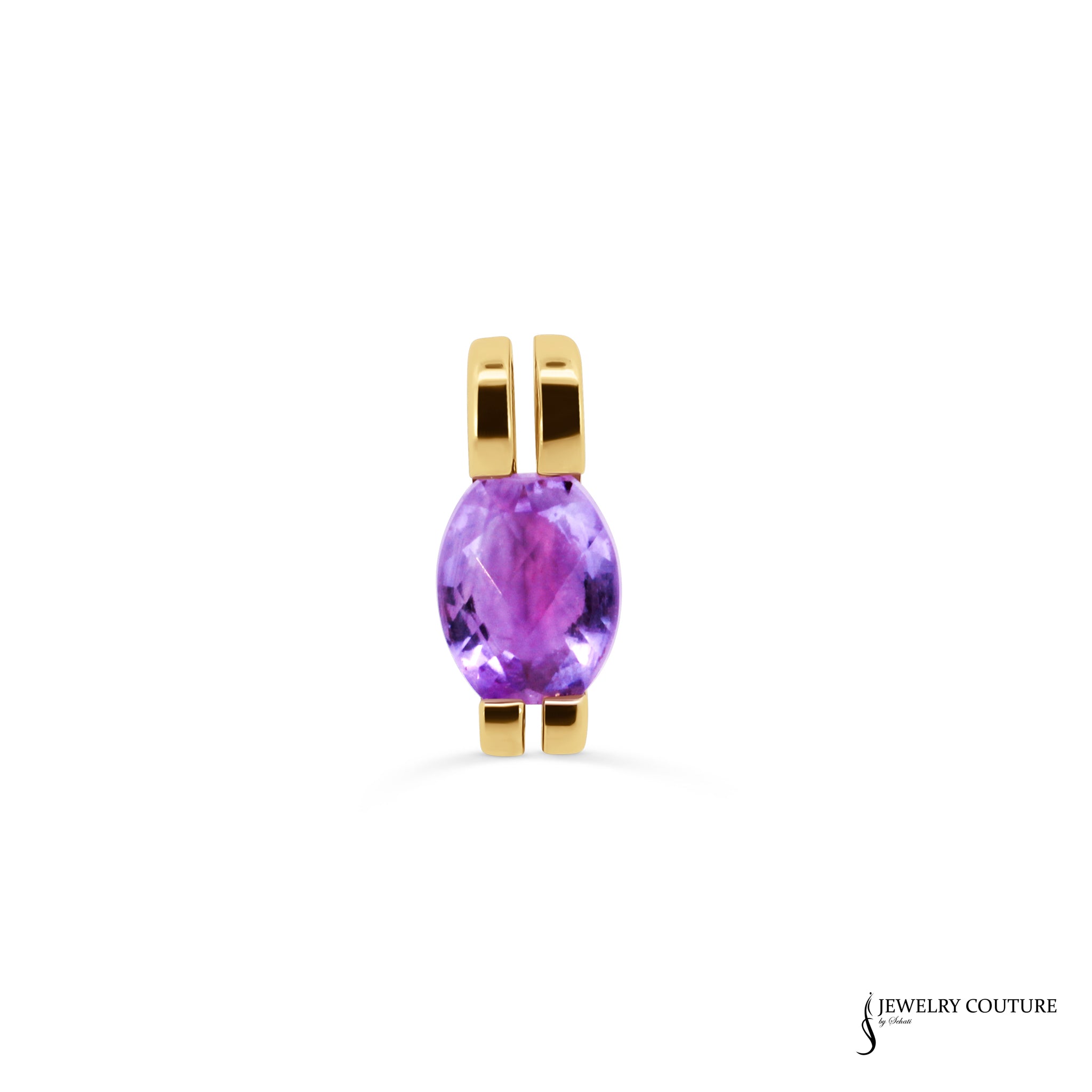 Enhance your jewelry collection with this 14KT Yellow Gold Amethyst Charm, a perfect blend of elegance and versatility. Featuring a beautifully faceted amethyst gemstone, this charm radiates a mesmerizing purple hue, symbolizing peace, clarity, and inner strength. The sleek yellow gold setting securely cradles the gemstone, allowing its natural brilliance to shine through.