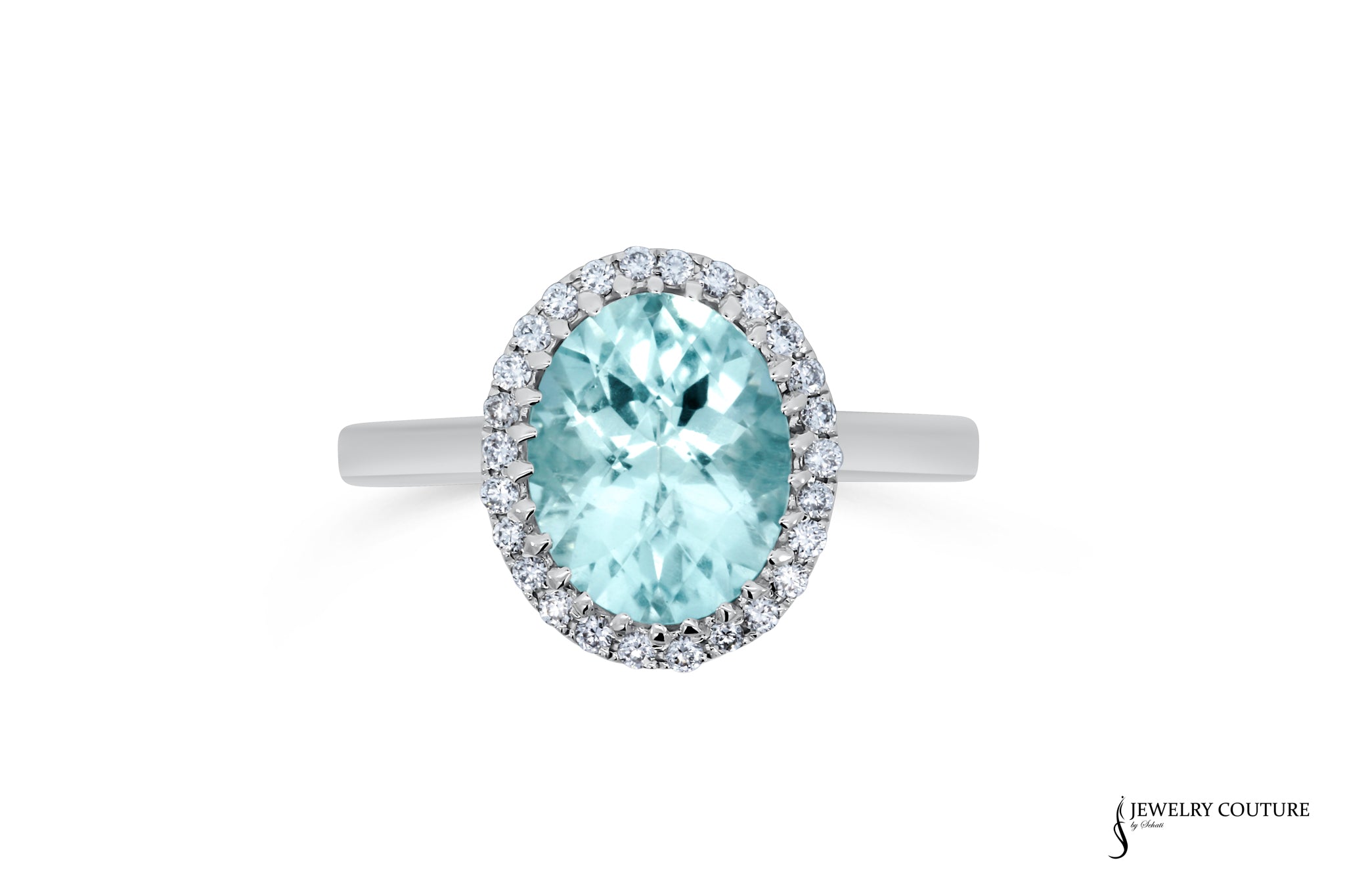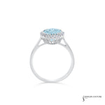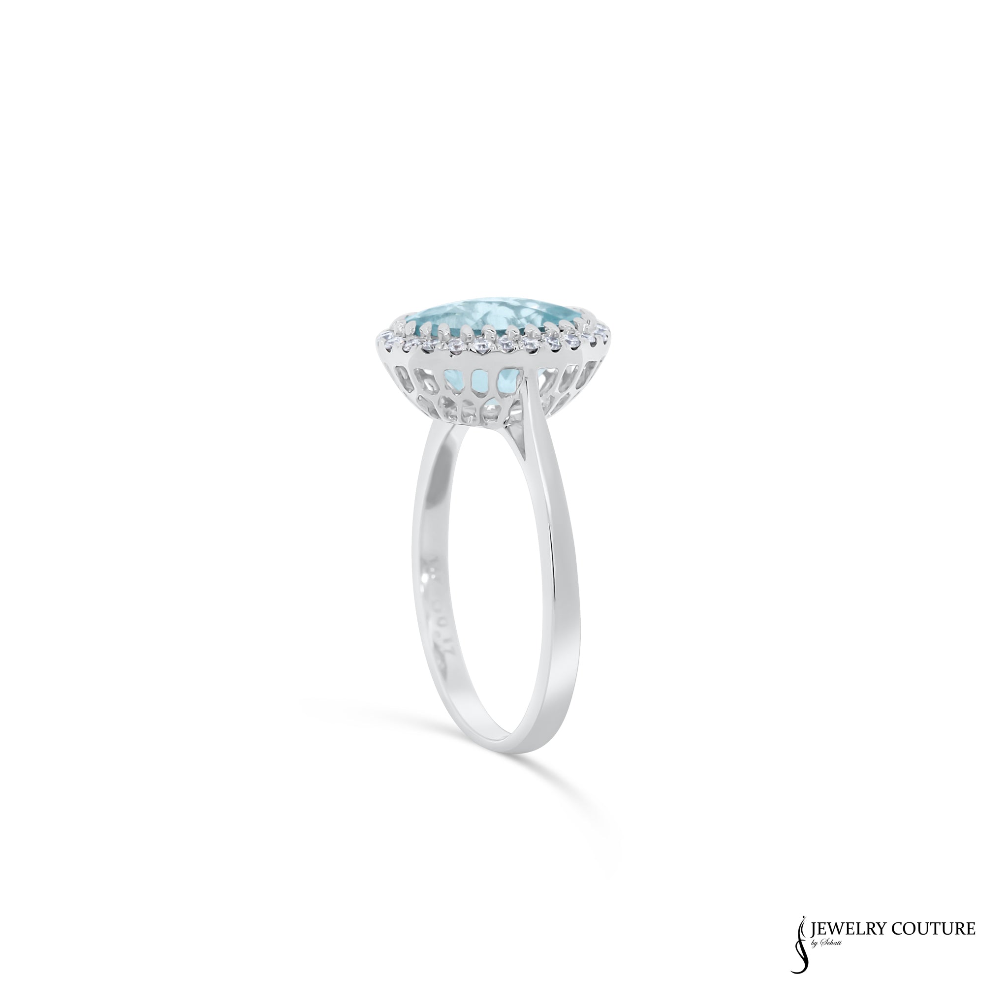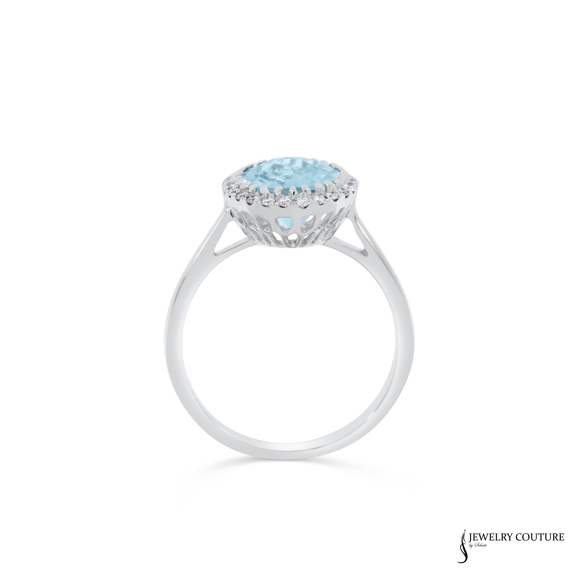 Perfect for special occasions or everyday luxury, this aquamarine and diamond halo ring adds a touch of refined beauty to any collection.