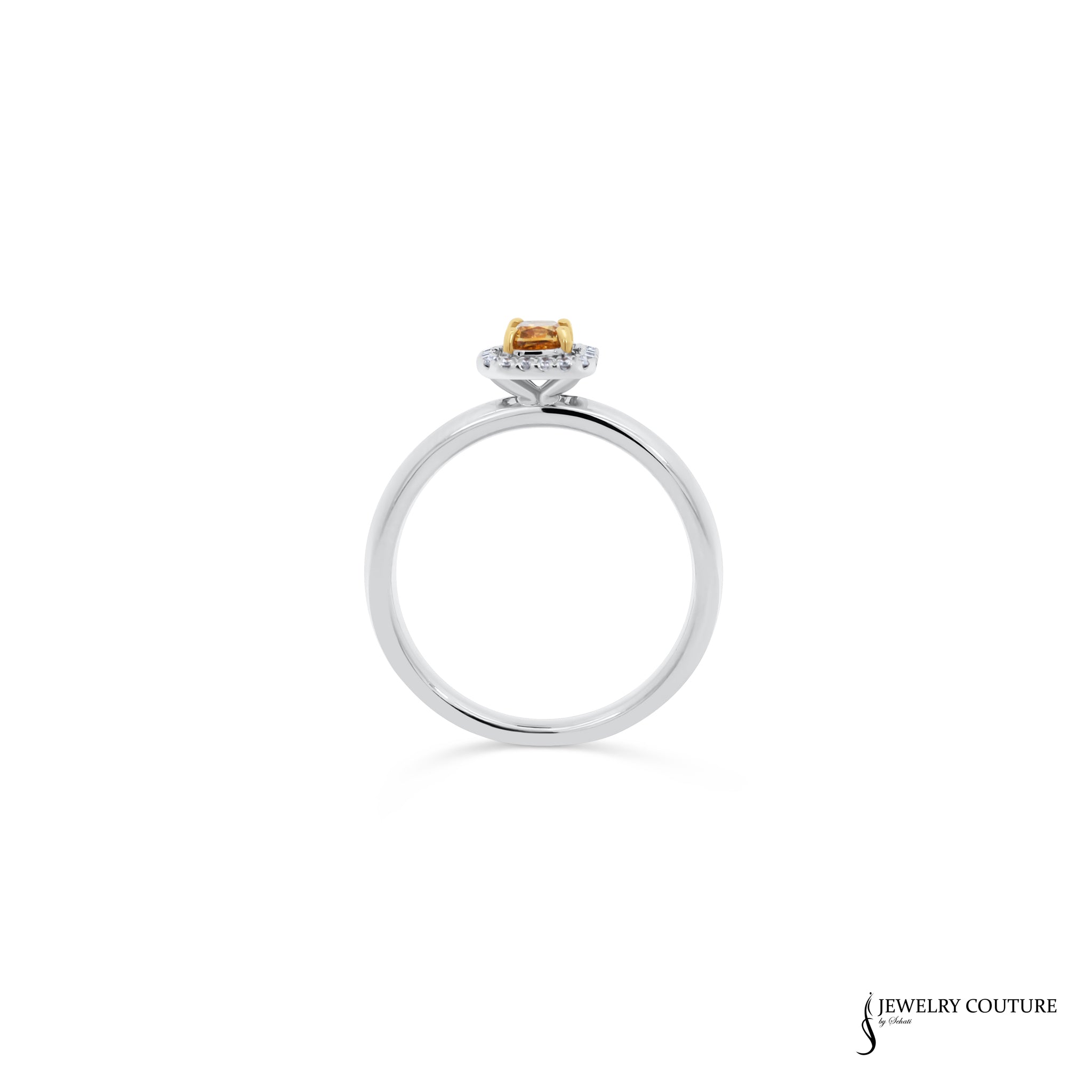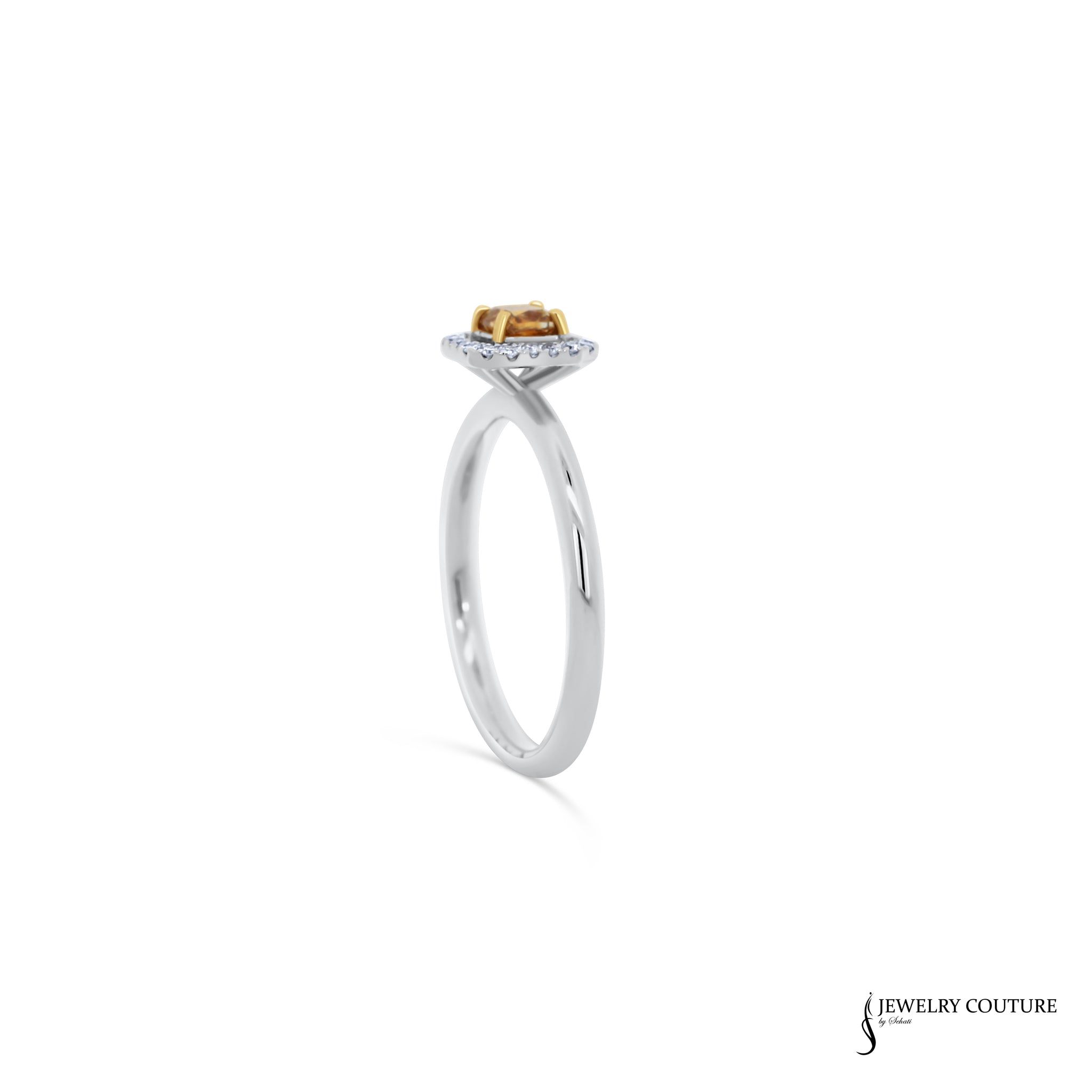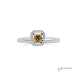 Arum - 14KT White Gold Cognac Cushion Center Diamond Halo Stackable Ring
