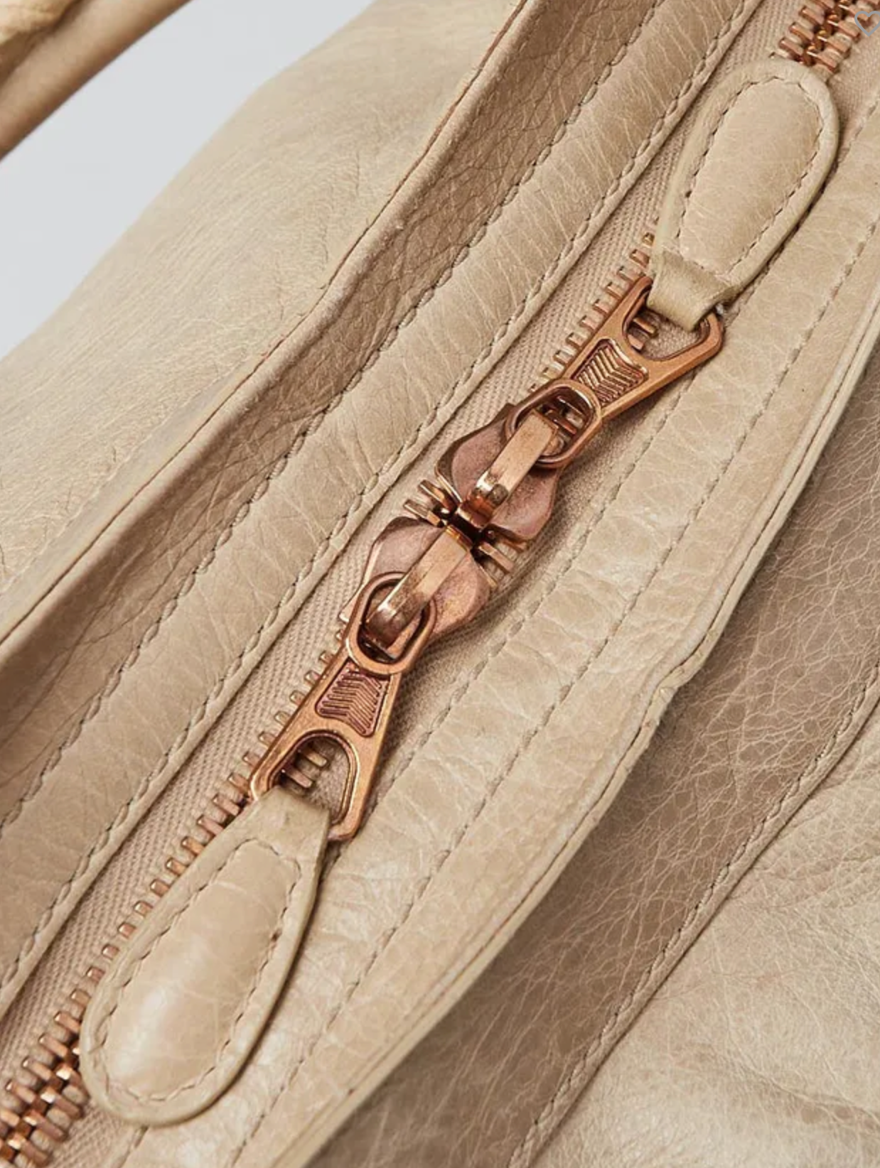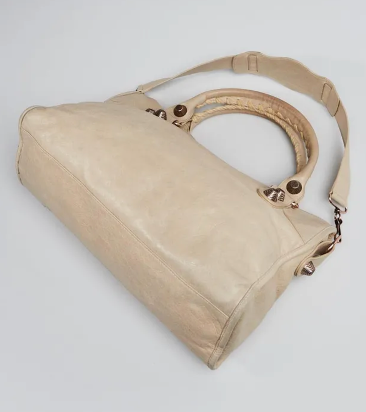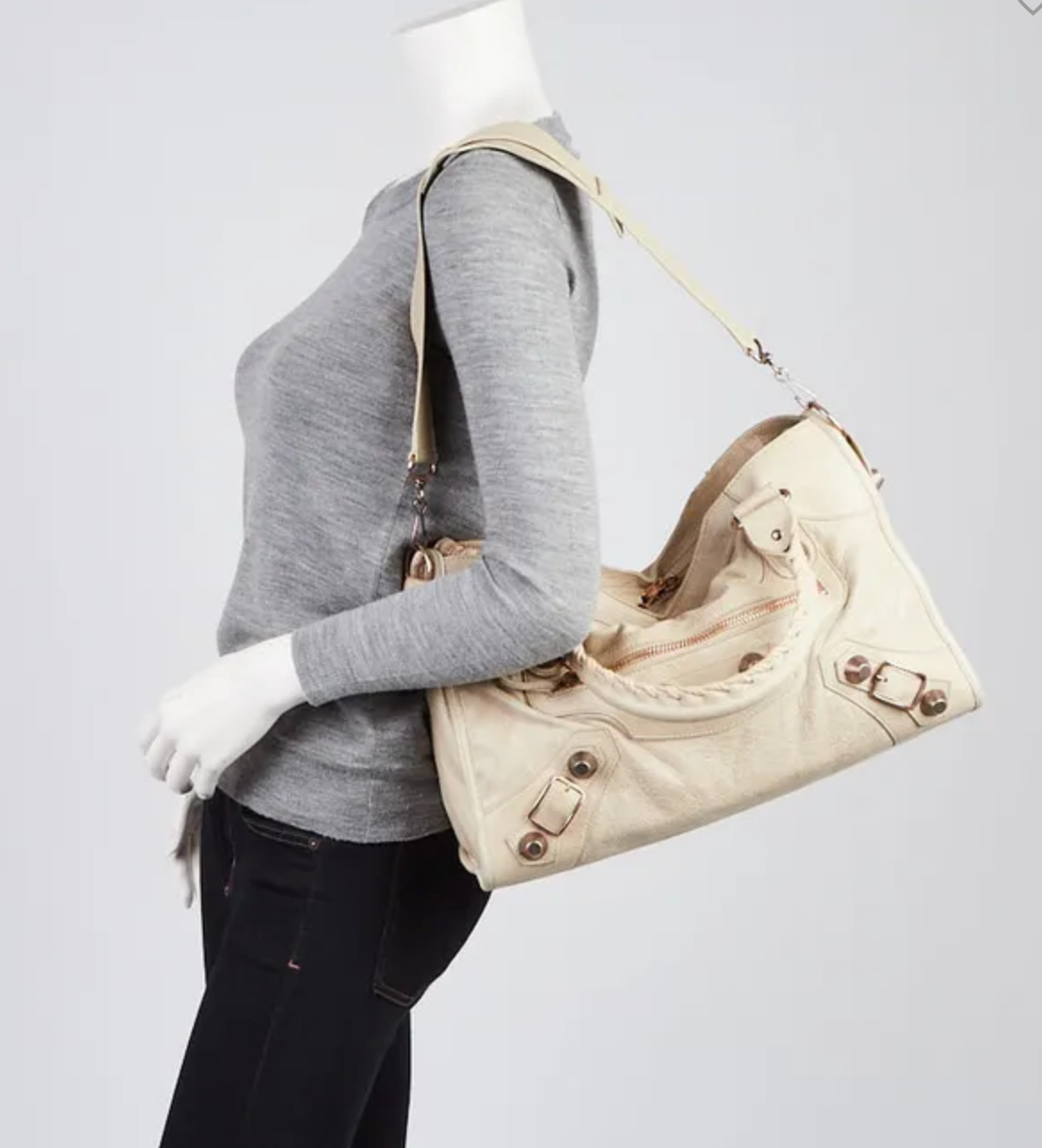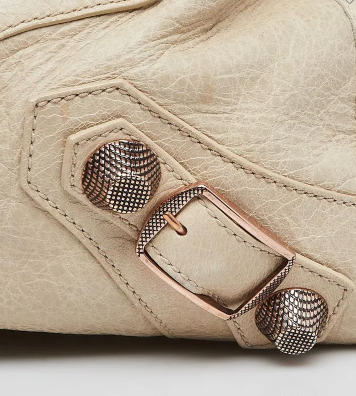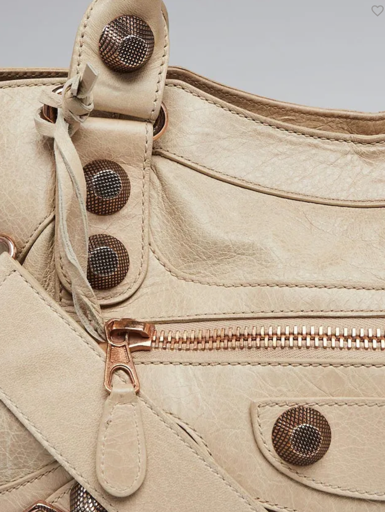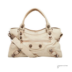 BALENCIAGA Praline Lambskin Leather Giant 21 Rose Gold Motorcycle City Bag