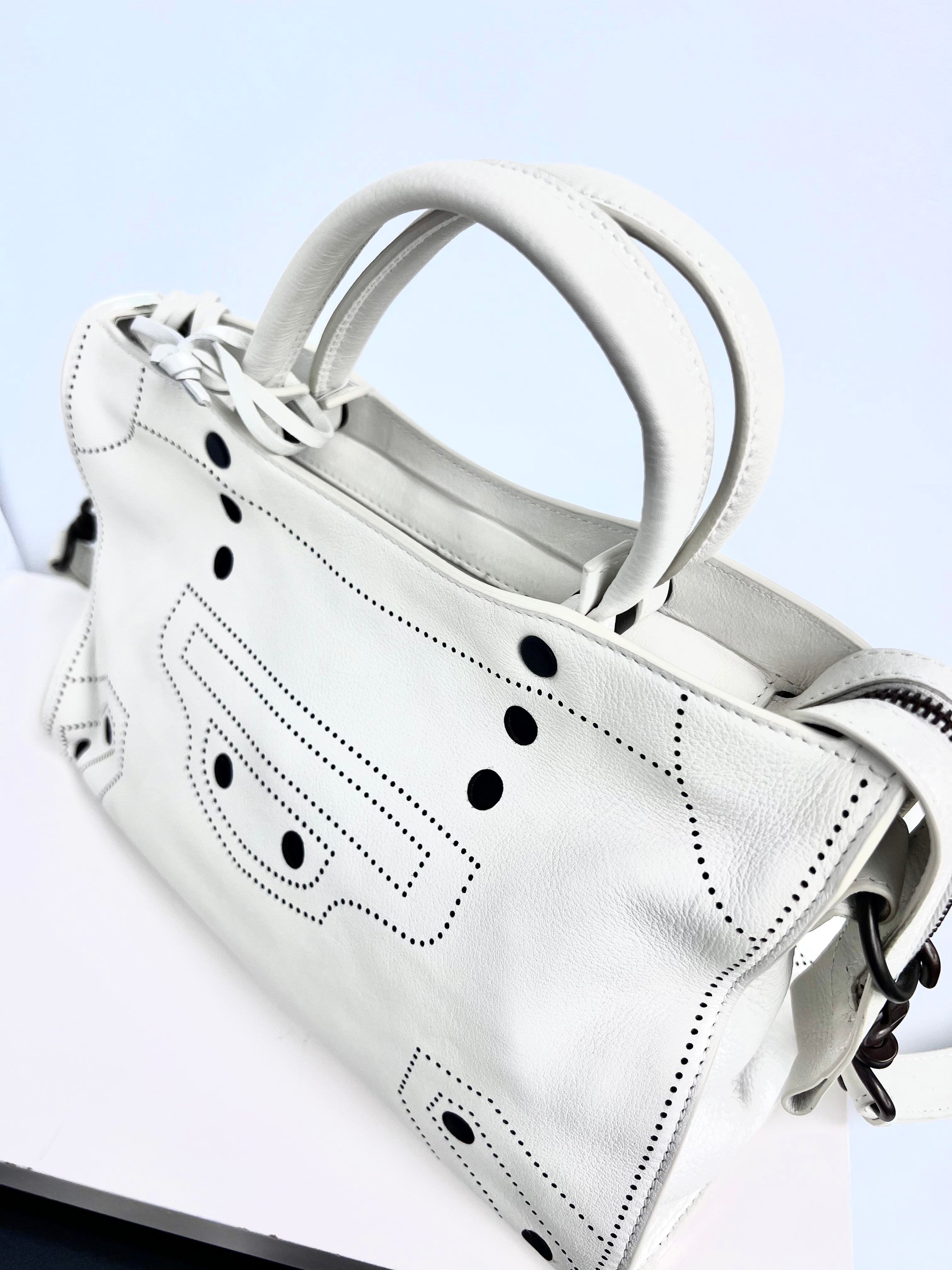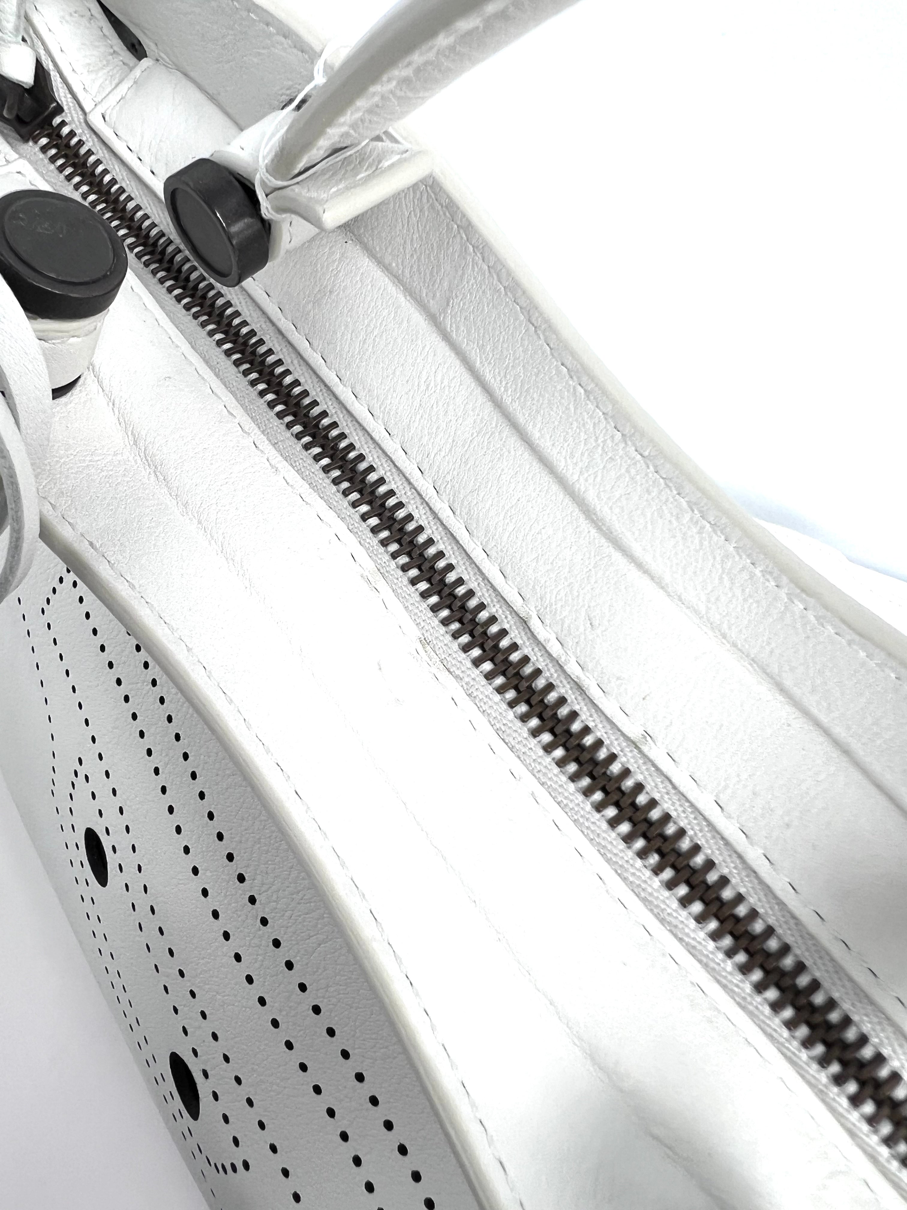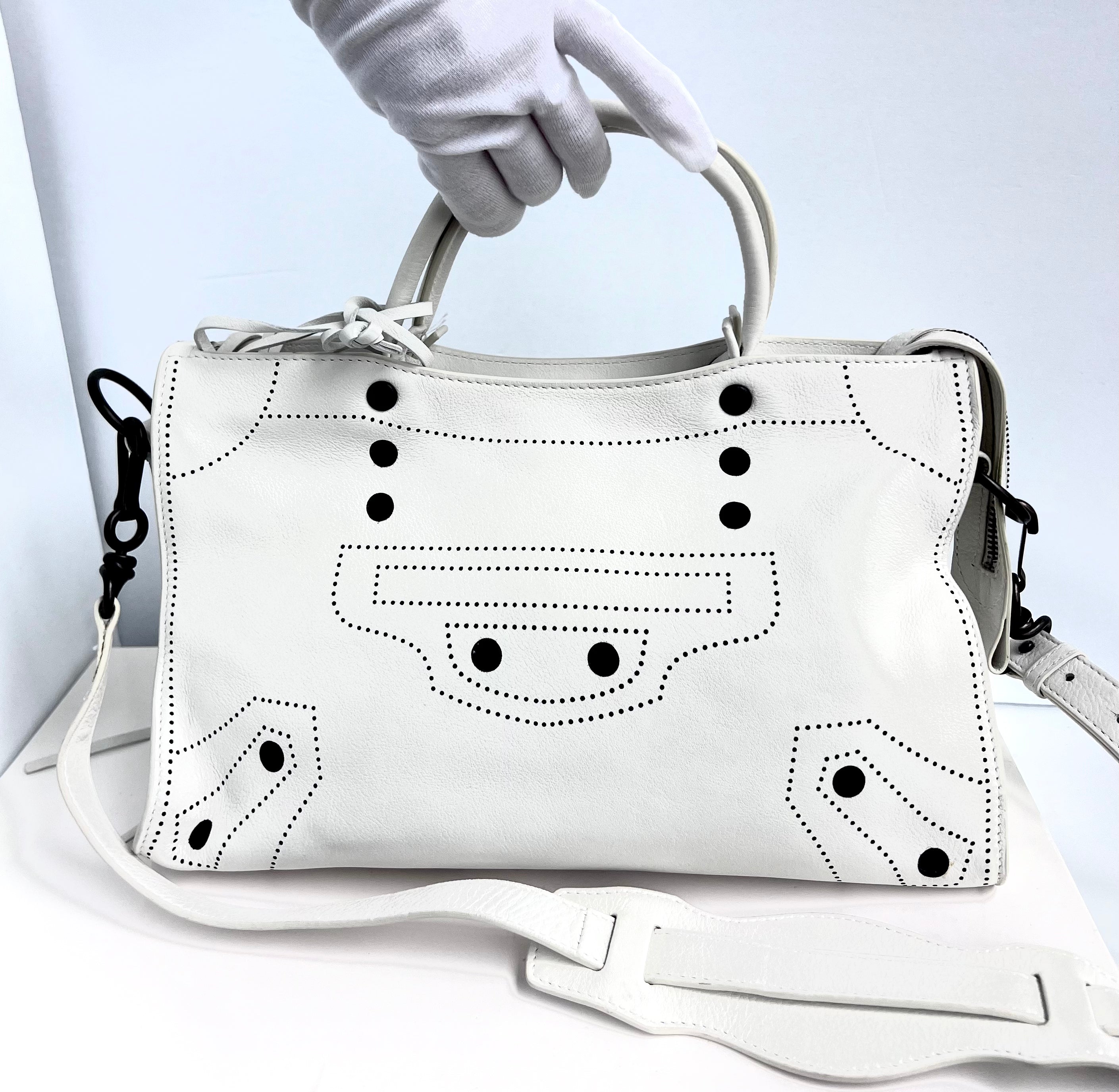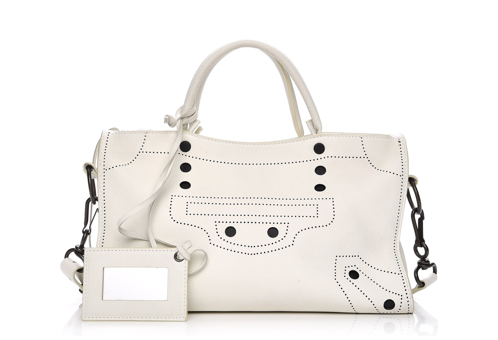 BALENCIAGA Veau Soyeux Perforated Blackout Hardware S City White Motocross Perforated Bag