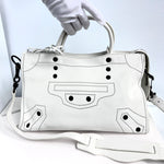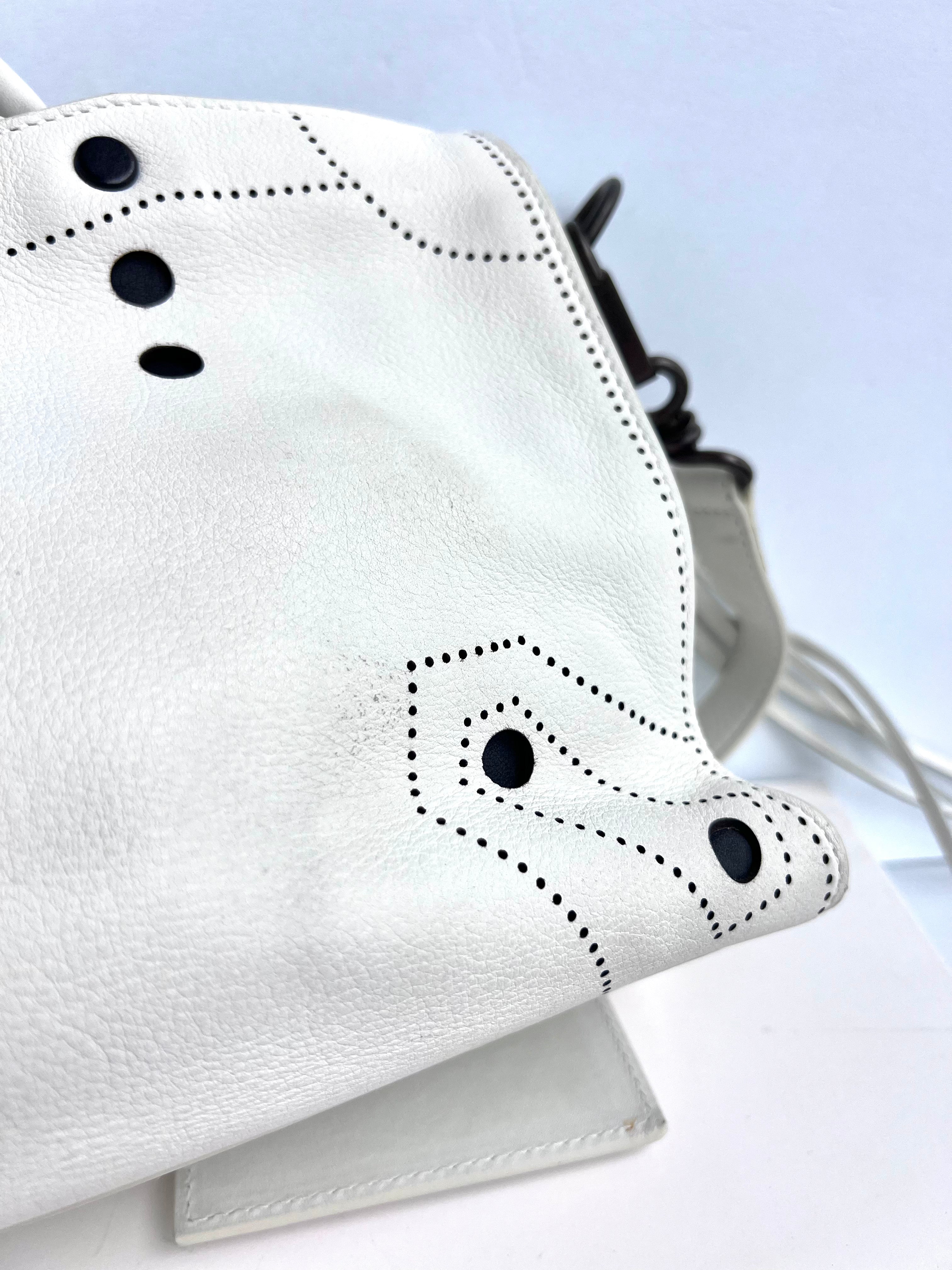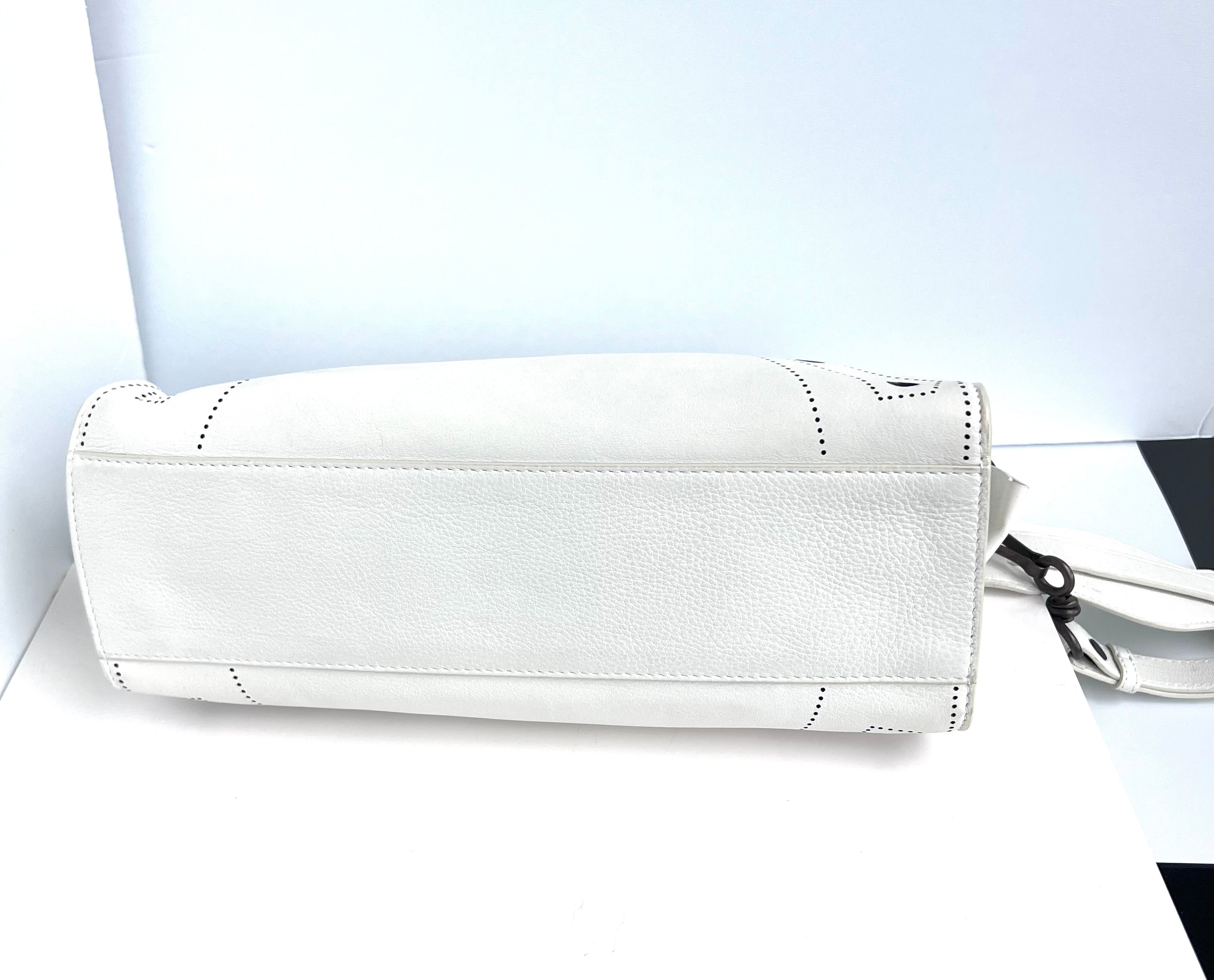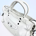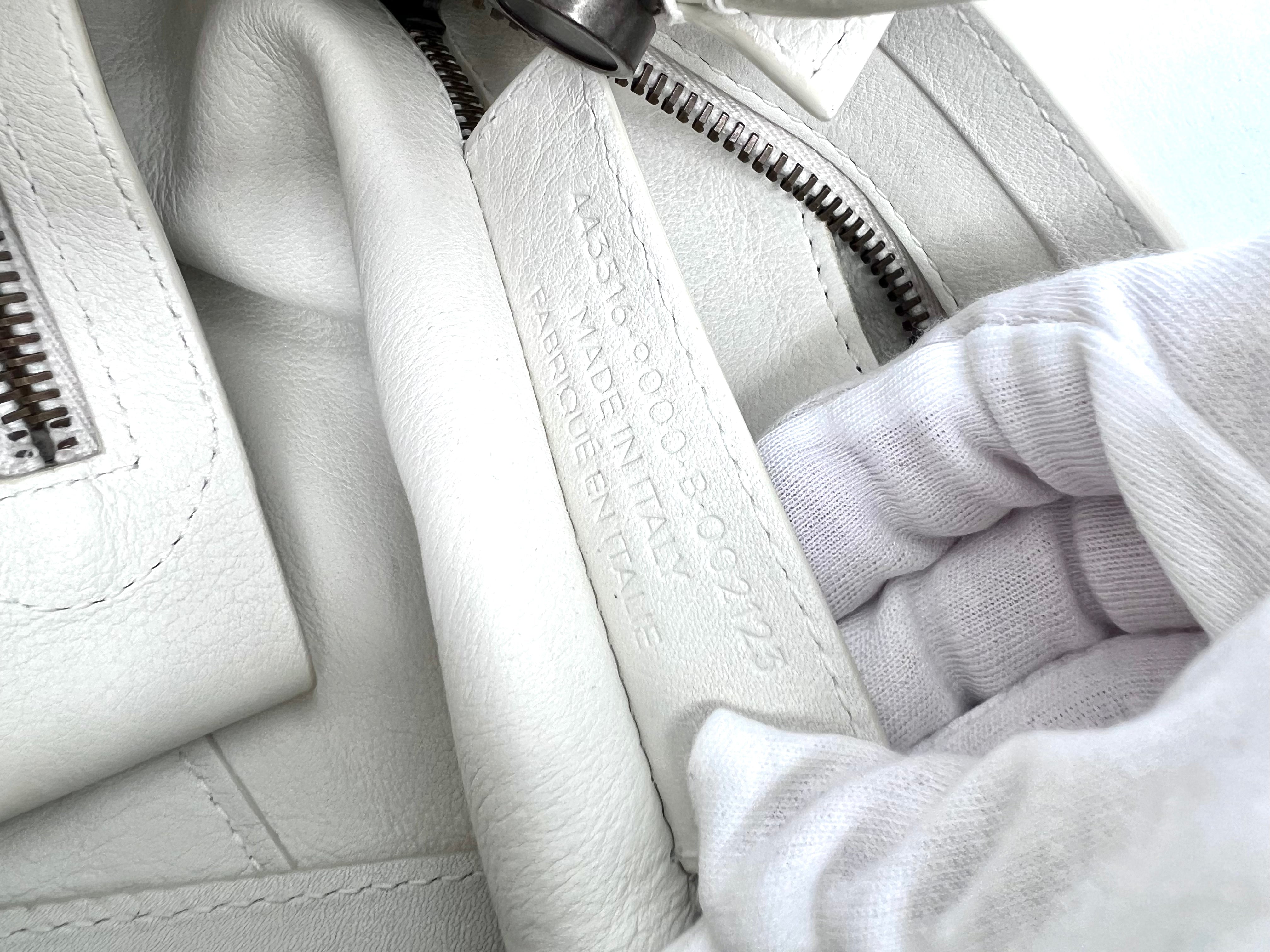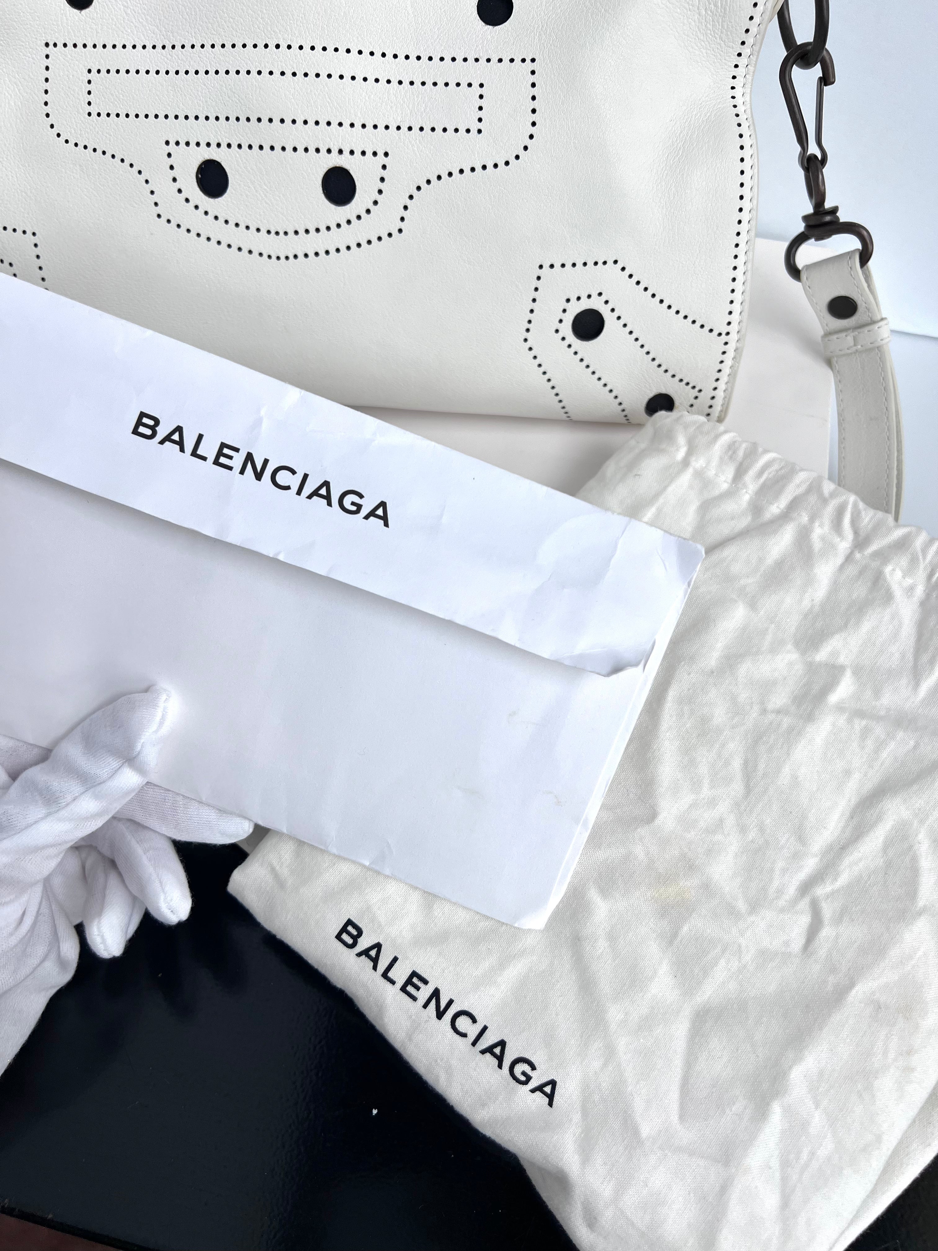 BALENCIAGA Veau Soyeux Perforated Blackout Hardware S City White Motocross Perforated Bag