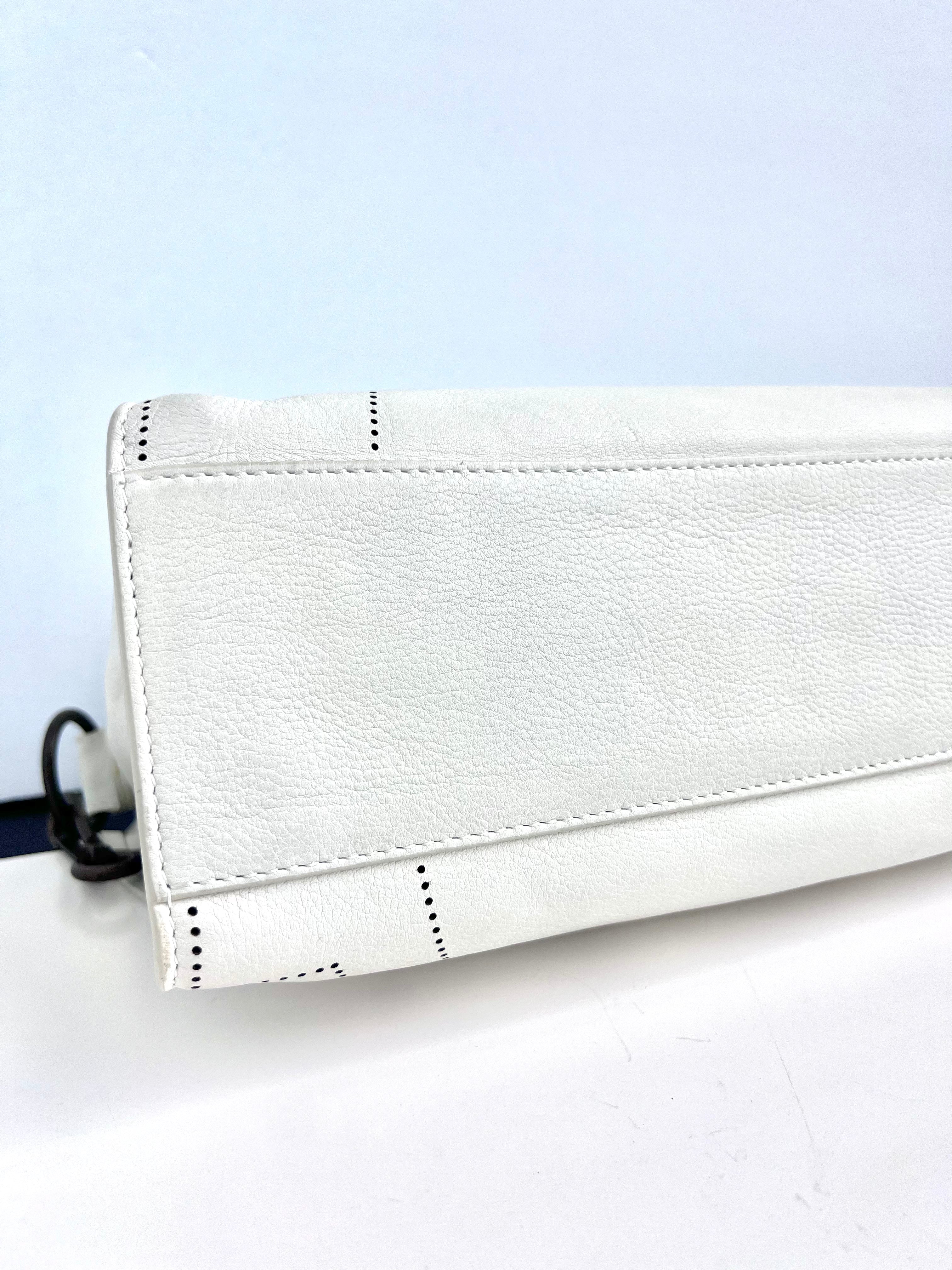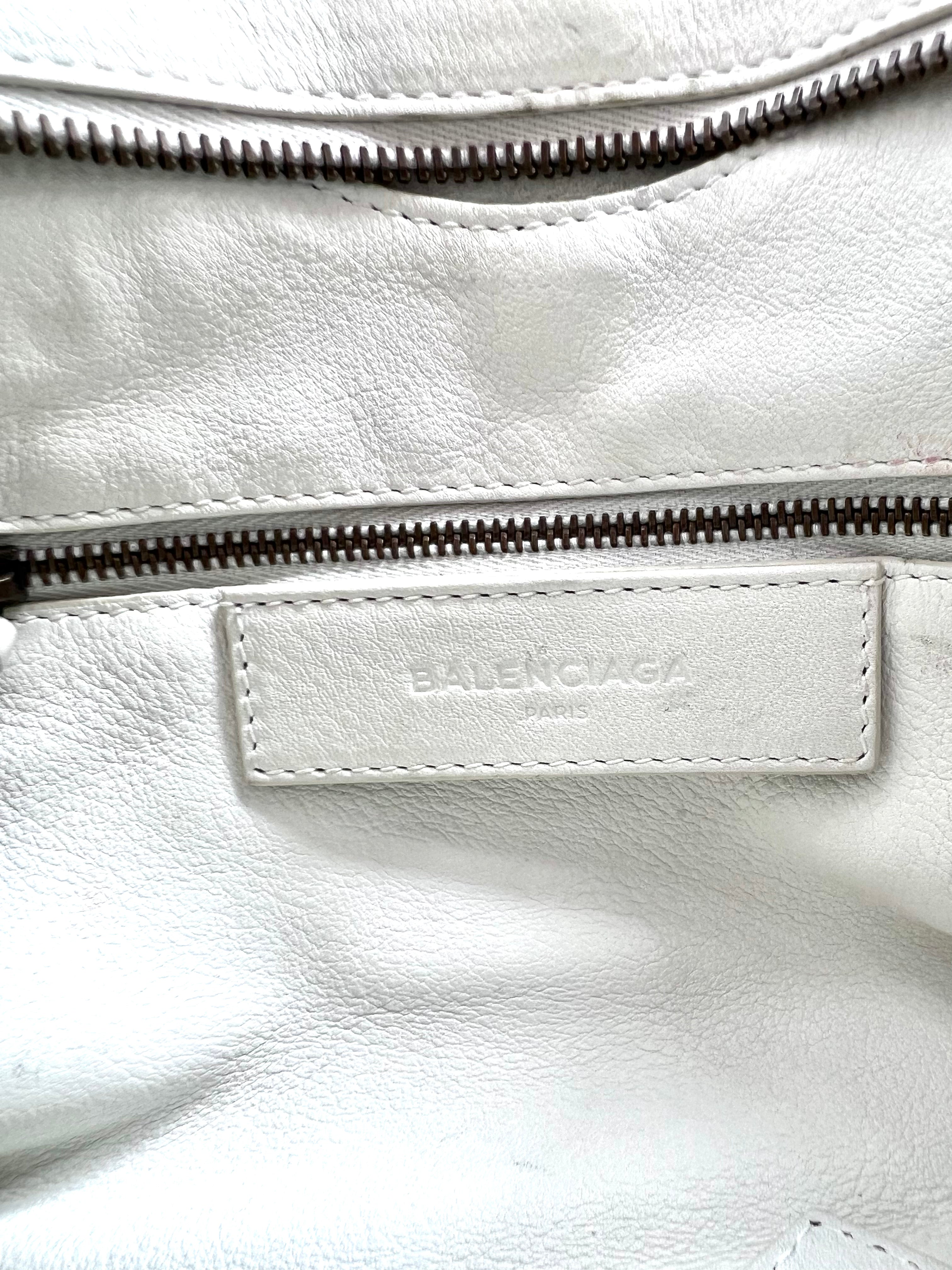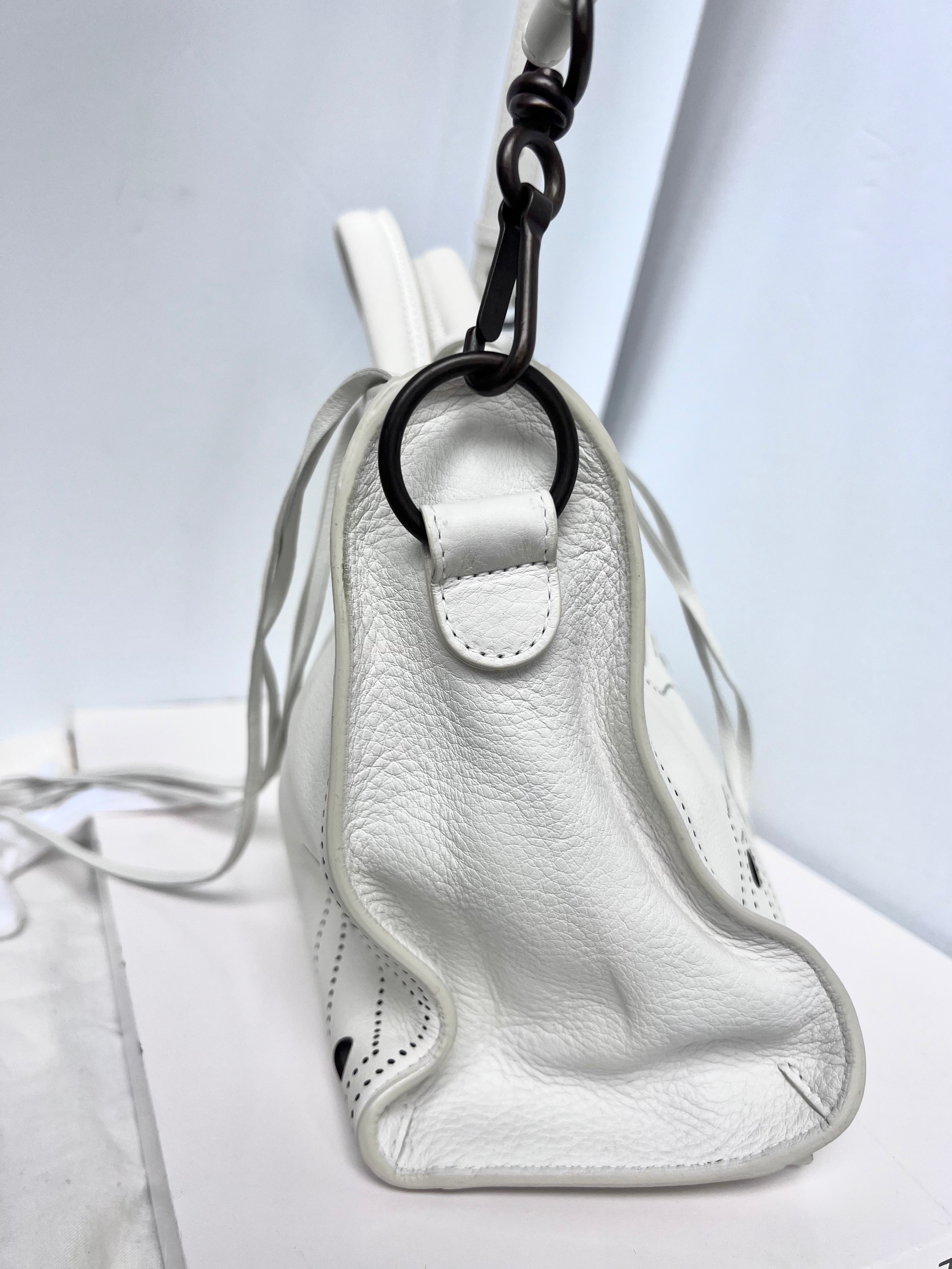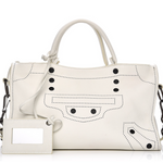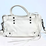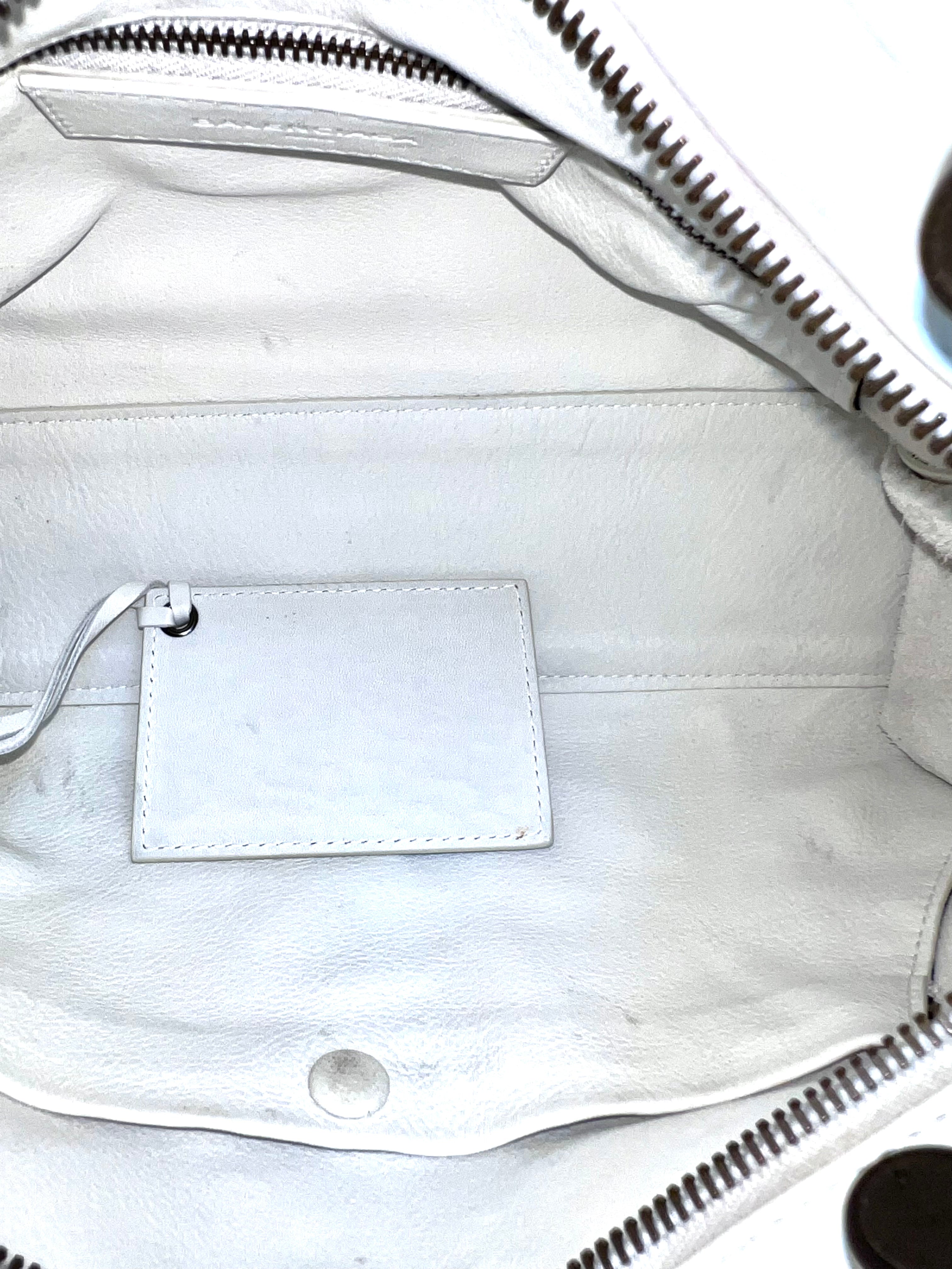 BALENCIAGA Veau Soyeux Perforated Blackout Hardware S City White Motocross Perforated Bag