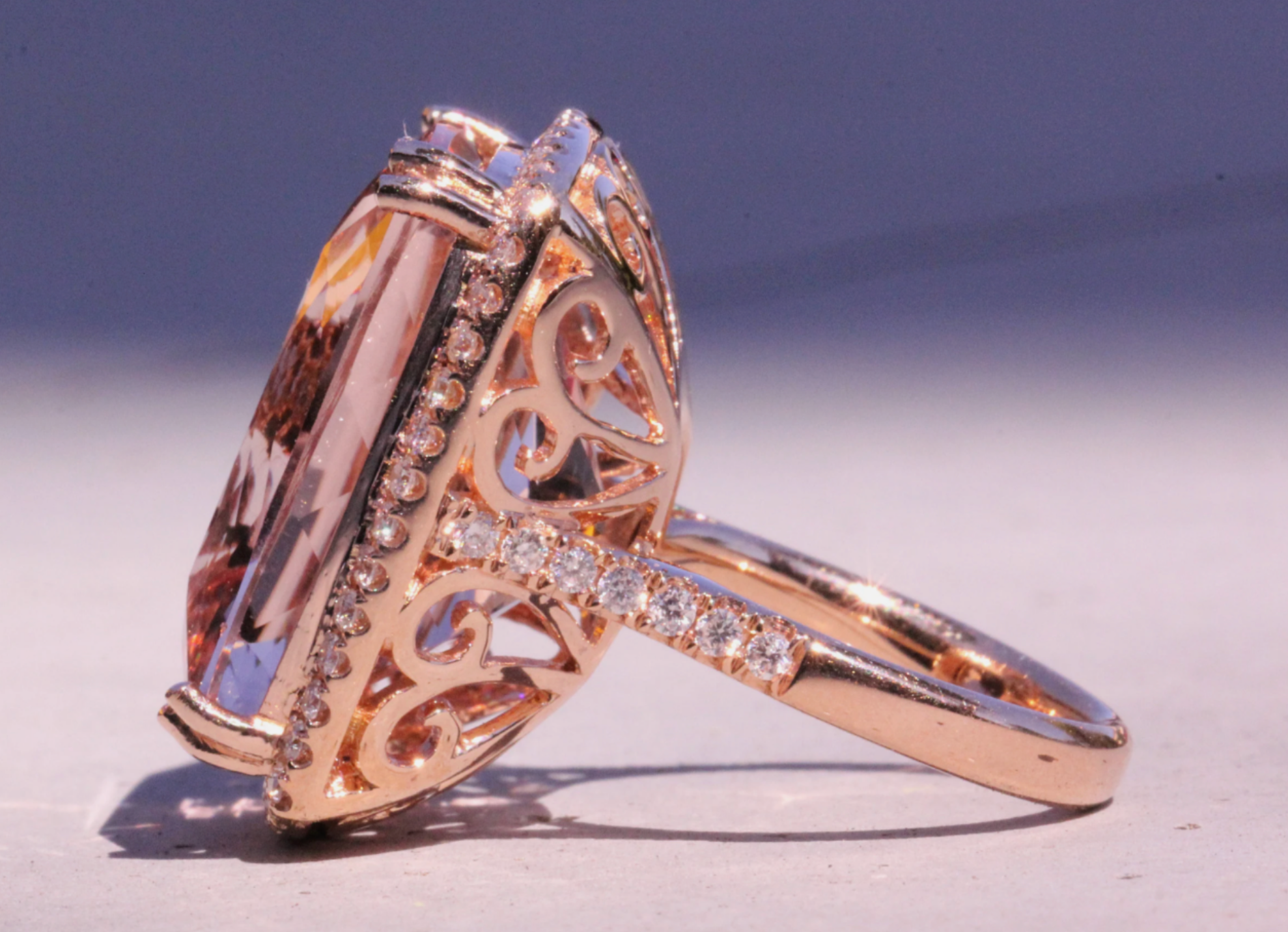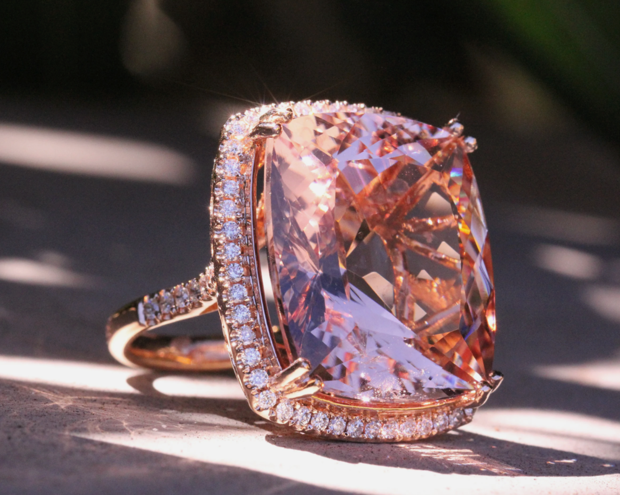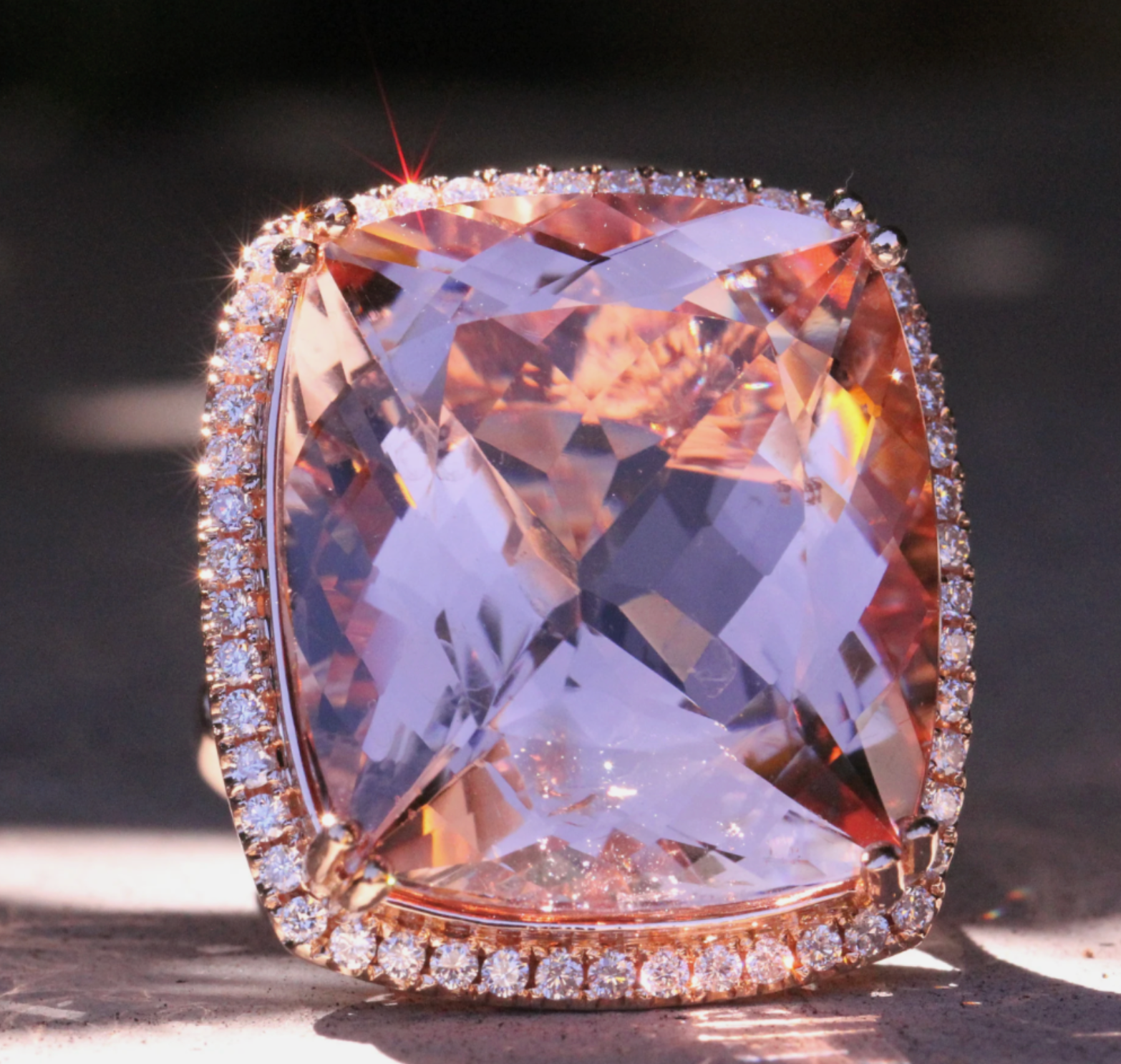 Big Cushion Shape Morganite 33.22 Carat Ring with a Diamond Halo, Fashion Ring