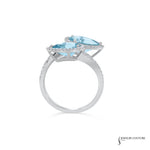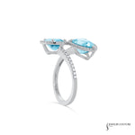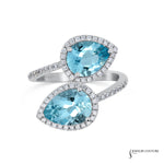 Caerulea - 14KT White Gold Pear Aquamarine and Diamond Halo Bypass Ring